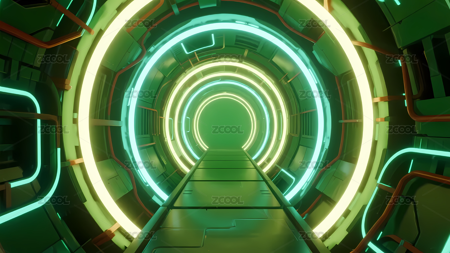 蓝色,科技,未来,空间,橙色,霓虹灯,隧道,光效,环形,深黑