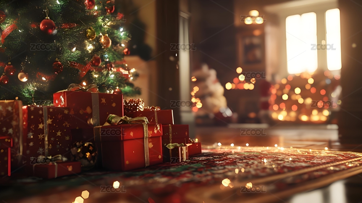 礼盒红白圣诞室内场景