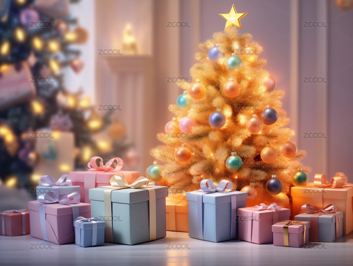 装饰精美的圣诞树与礼物盒