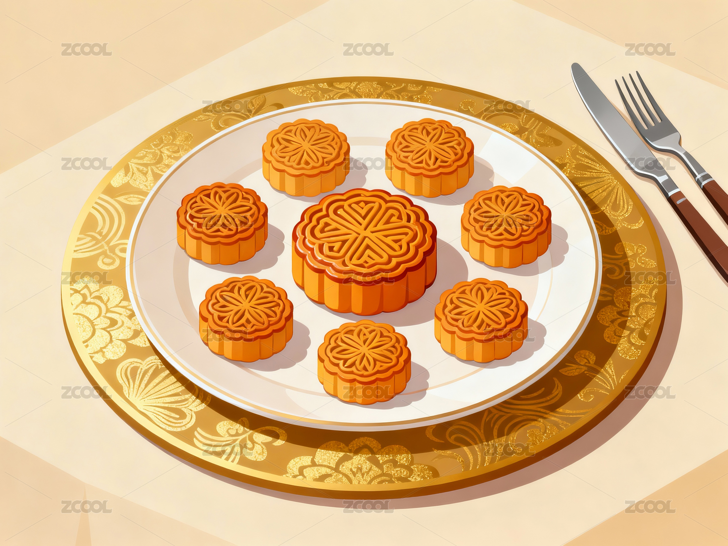 月饼,圆形,传统,节日,金色,雕刻,精美,摆盘,桂花,秋季