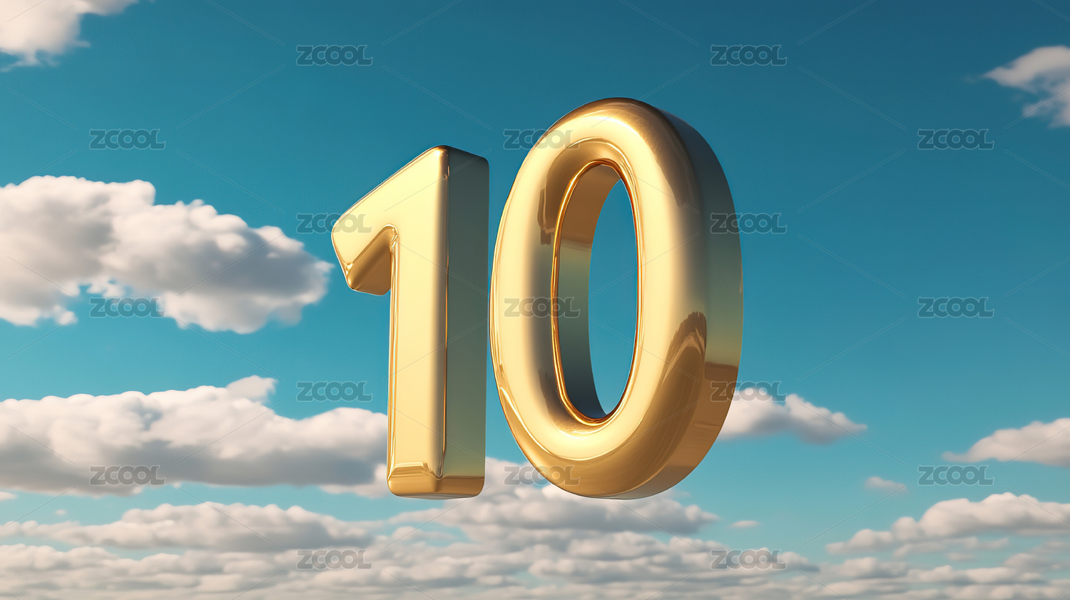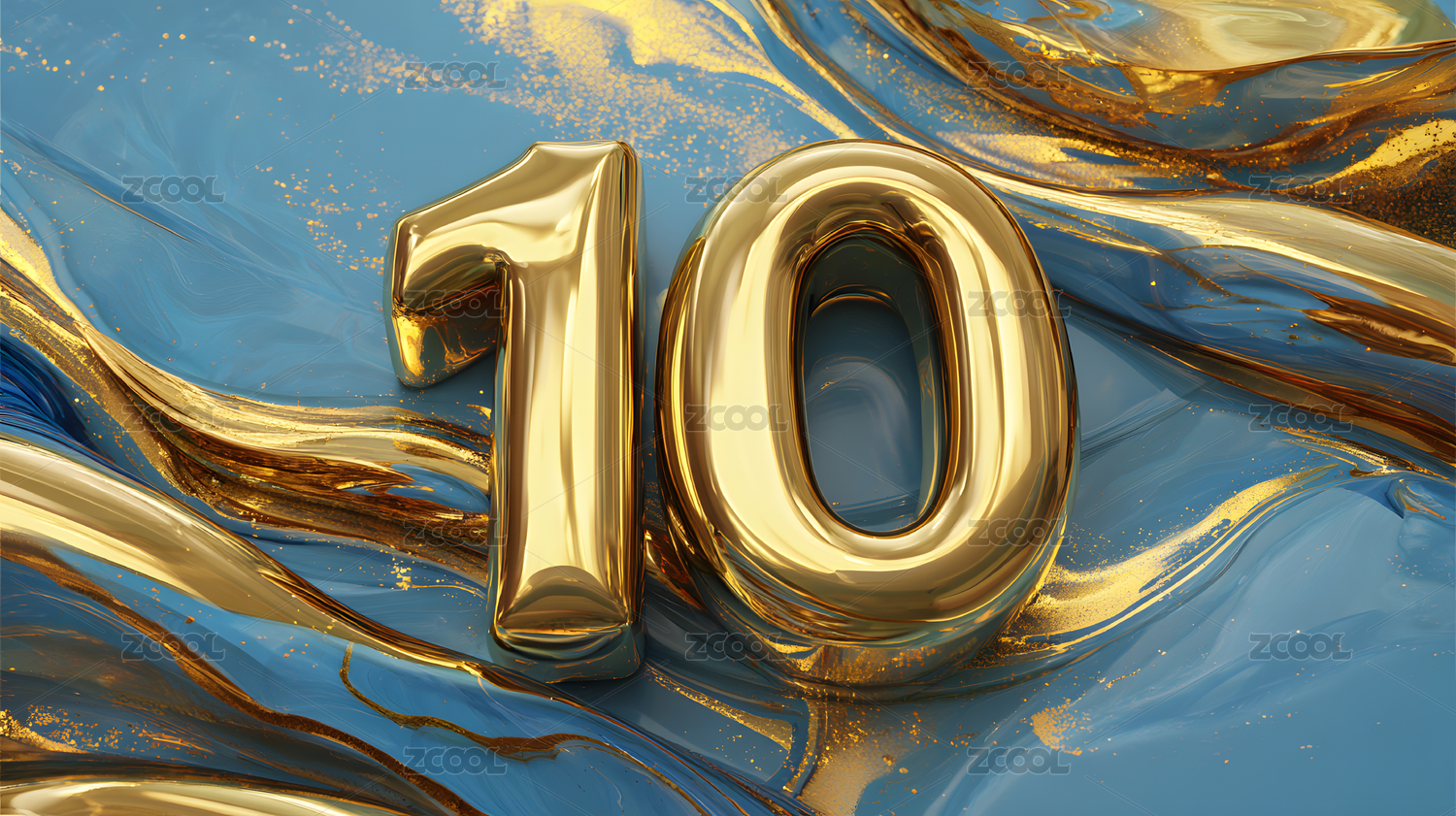 金色,彩绸,数字,10,艺术,质感,光泽,炫酷,创意,装饰
