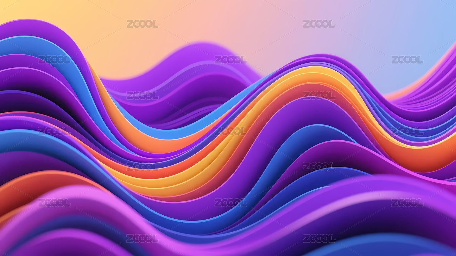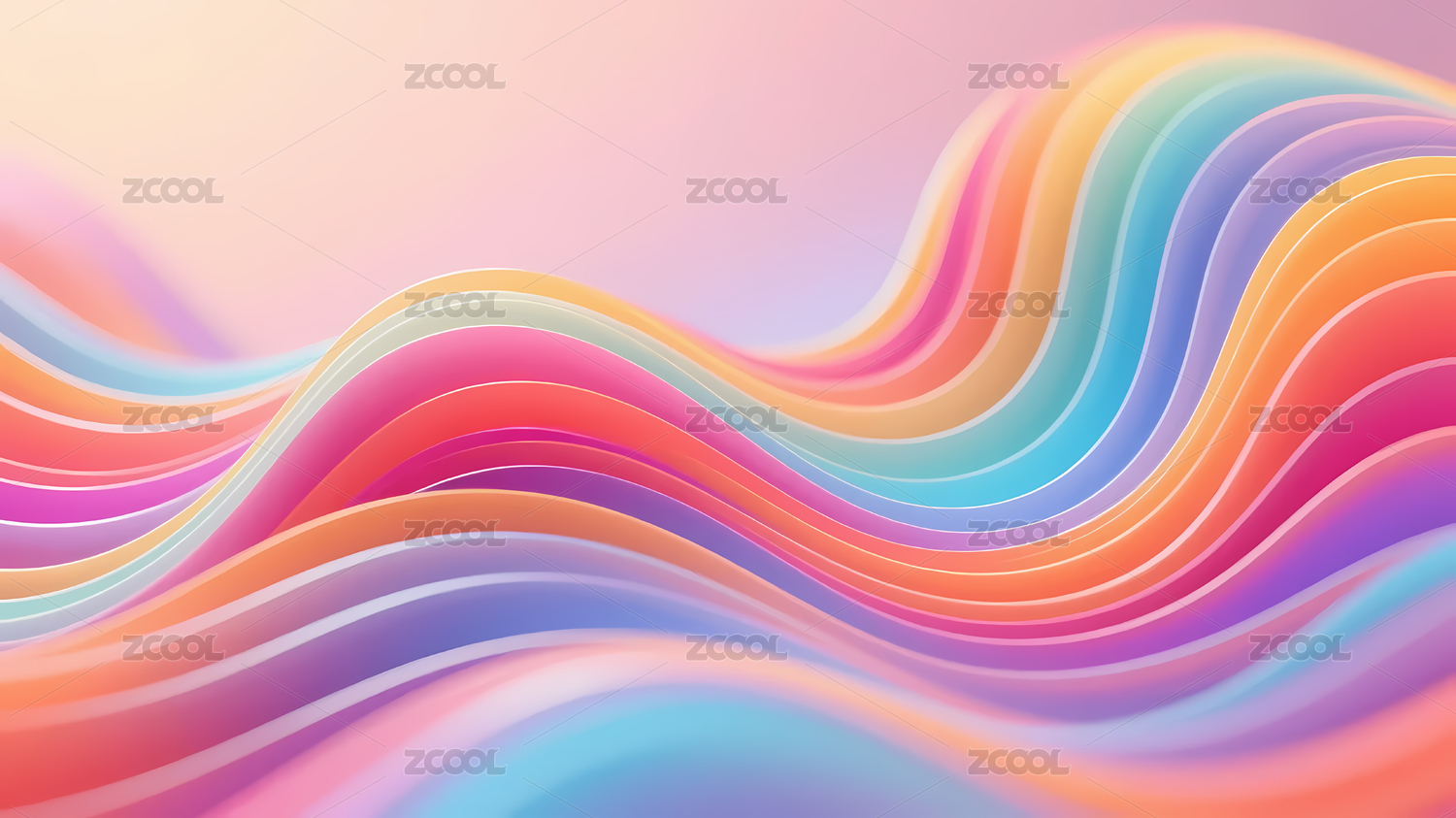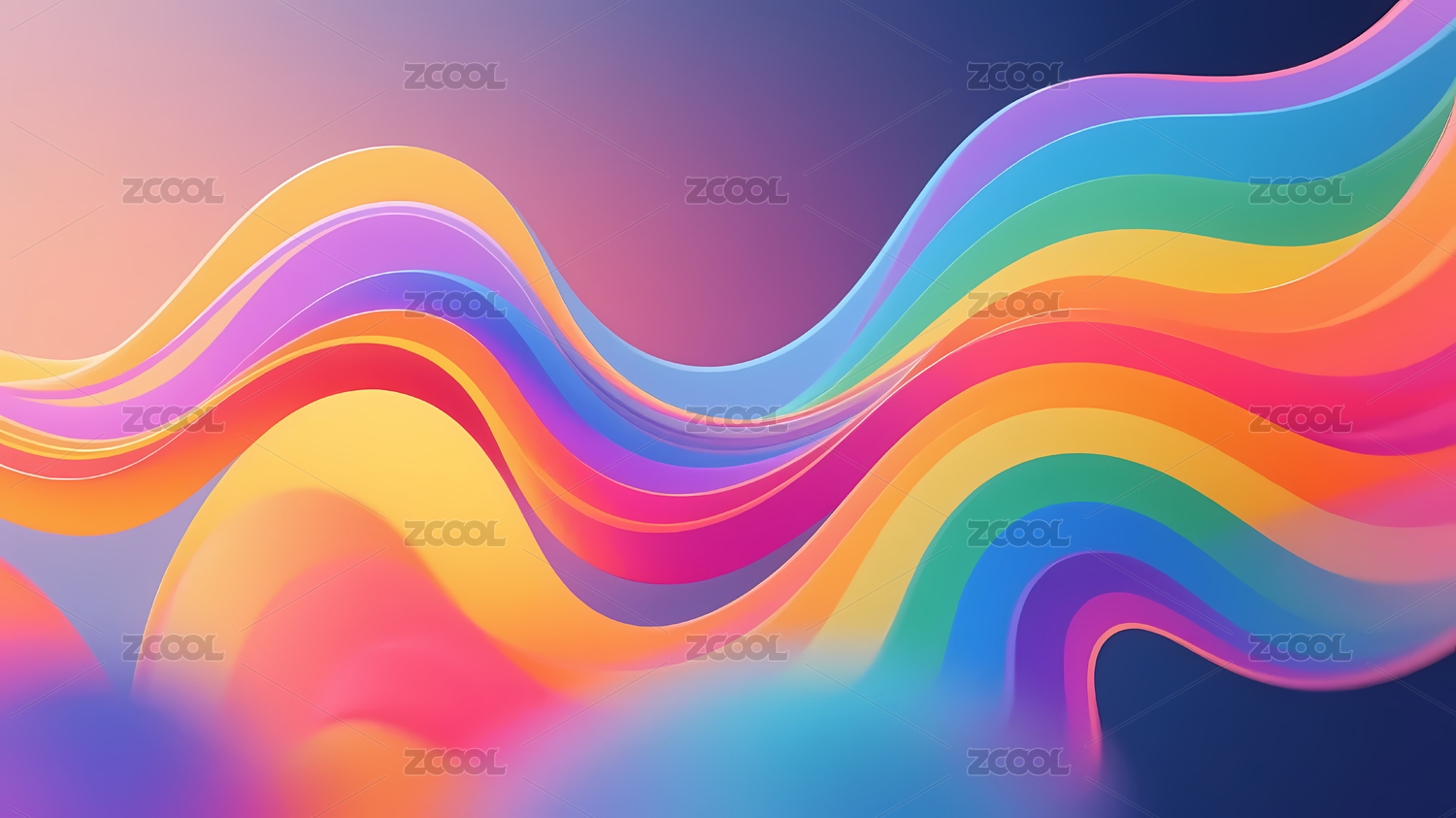 粉蓝黄紫渐变波浪线条的梦幻效果
