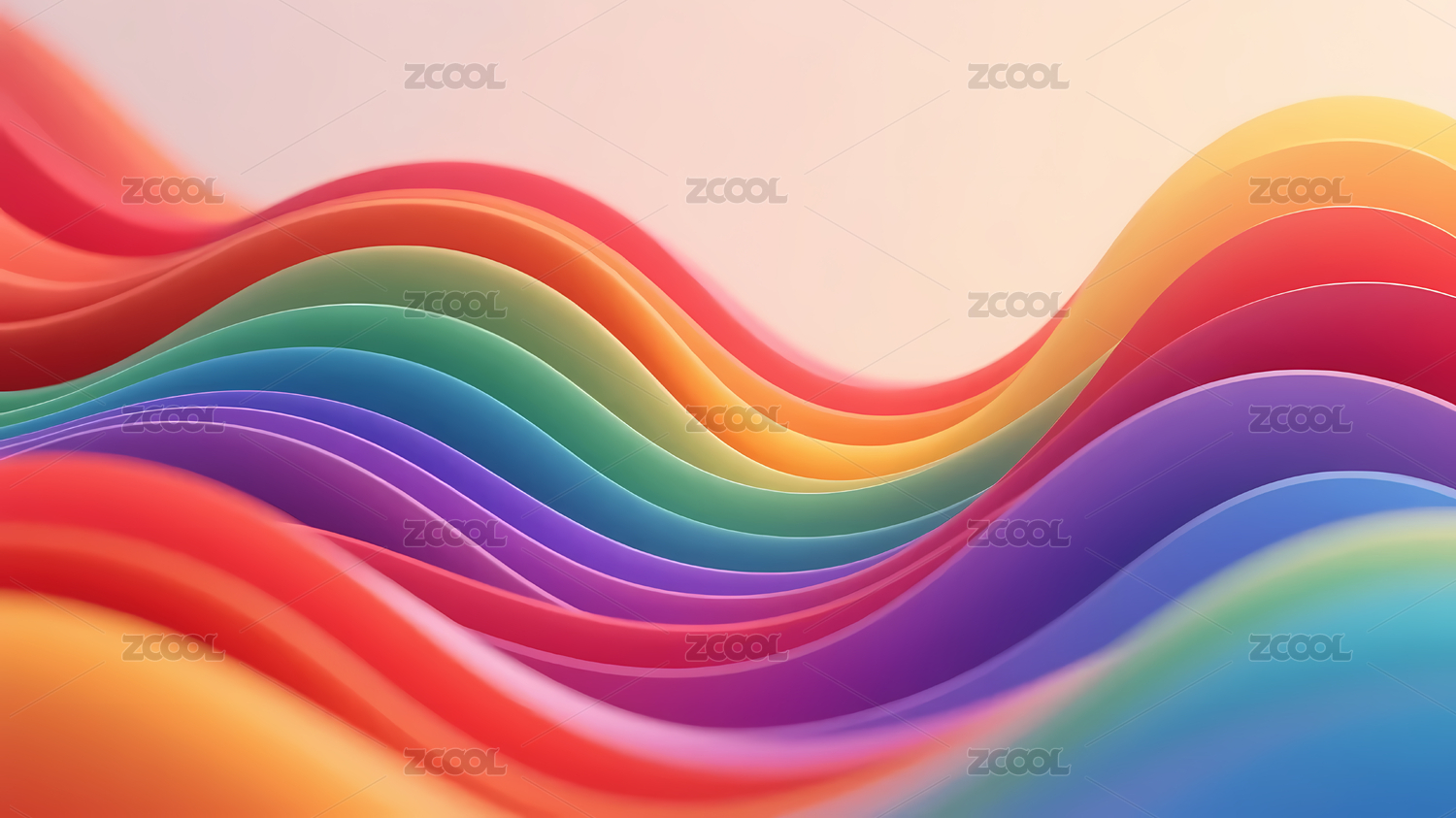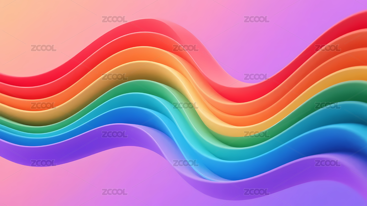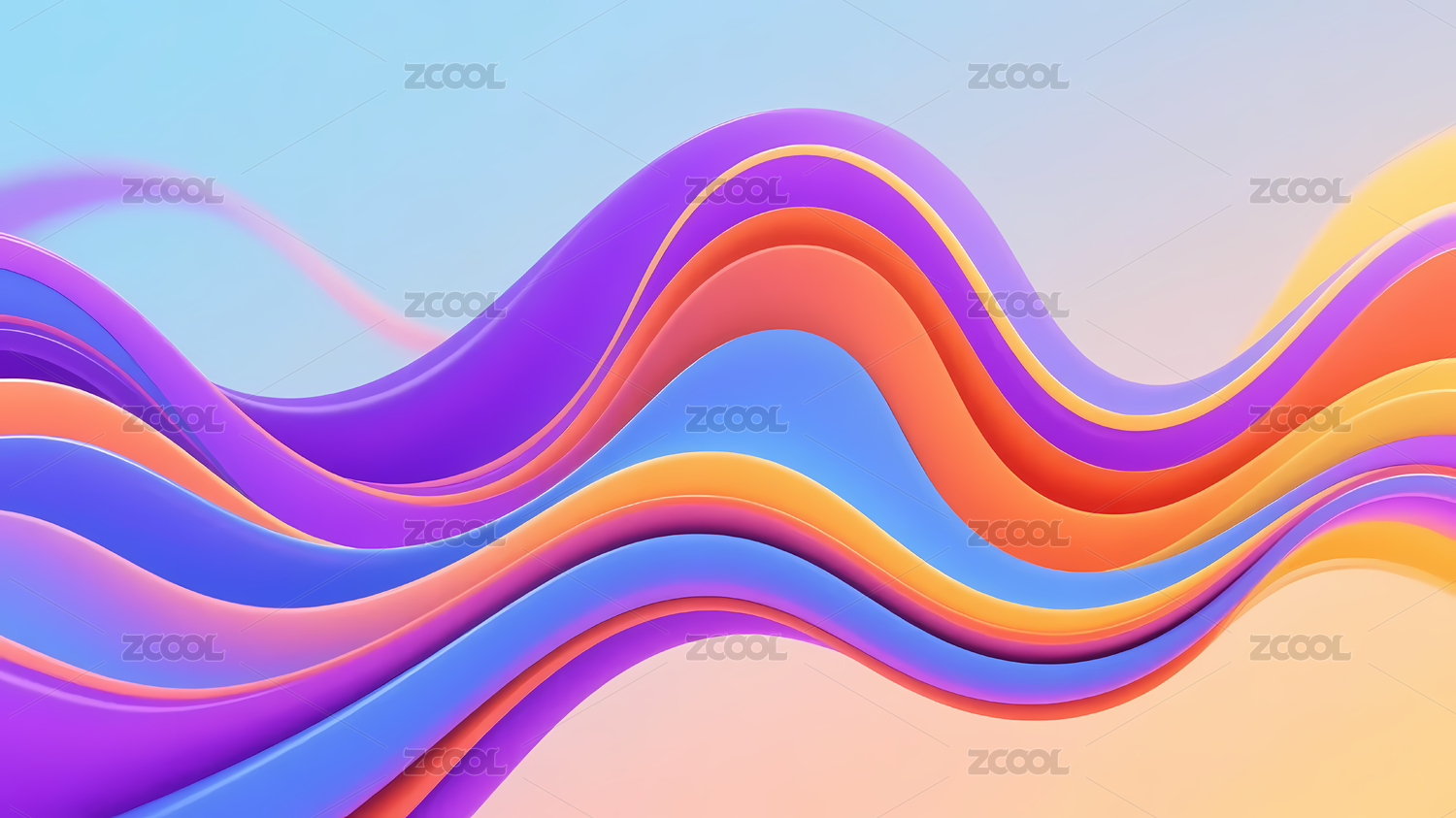 粉蓝黄紫渐变波浪线条的梦幻效果
