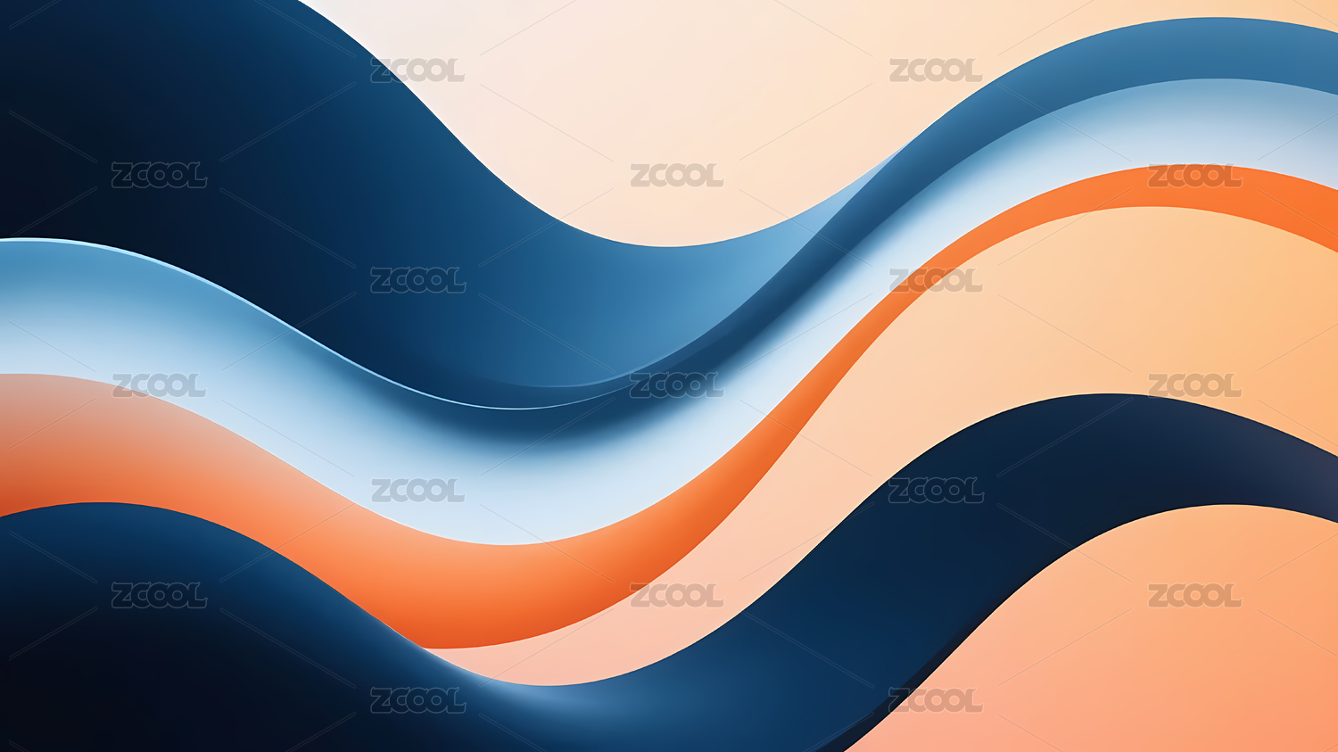 蓝白橙渐变波浪线深蓝背景