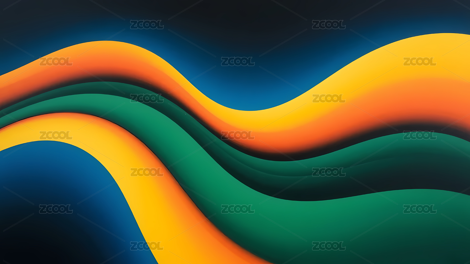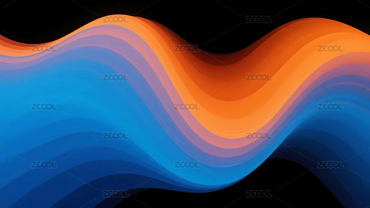 橙蓝波浪形曲线与深色背景