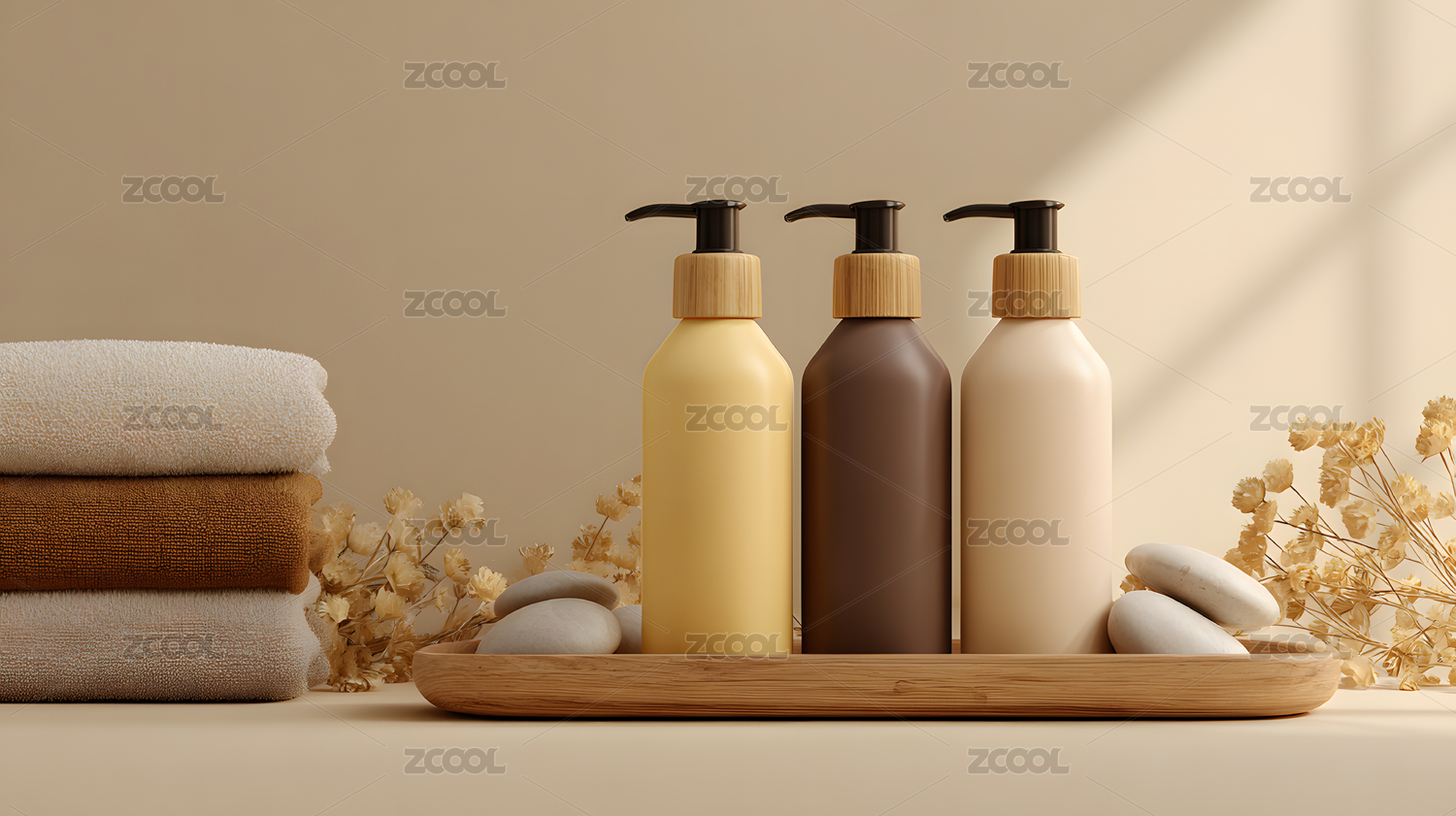 带有瓶罐毛巾的简约spa场景