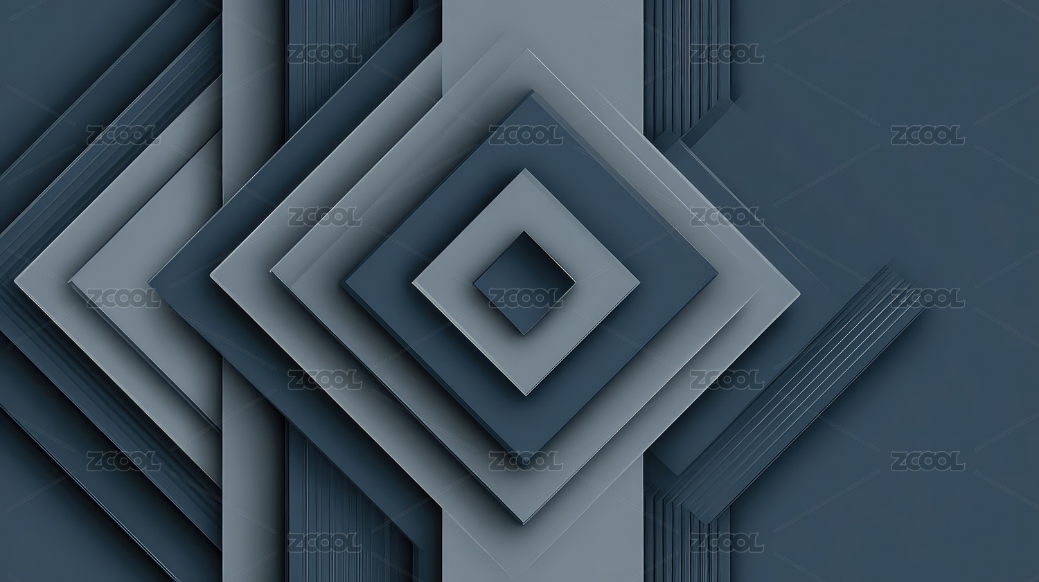 深蓝色几何方块叠加构图视觉效果