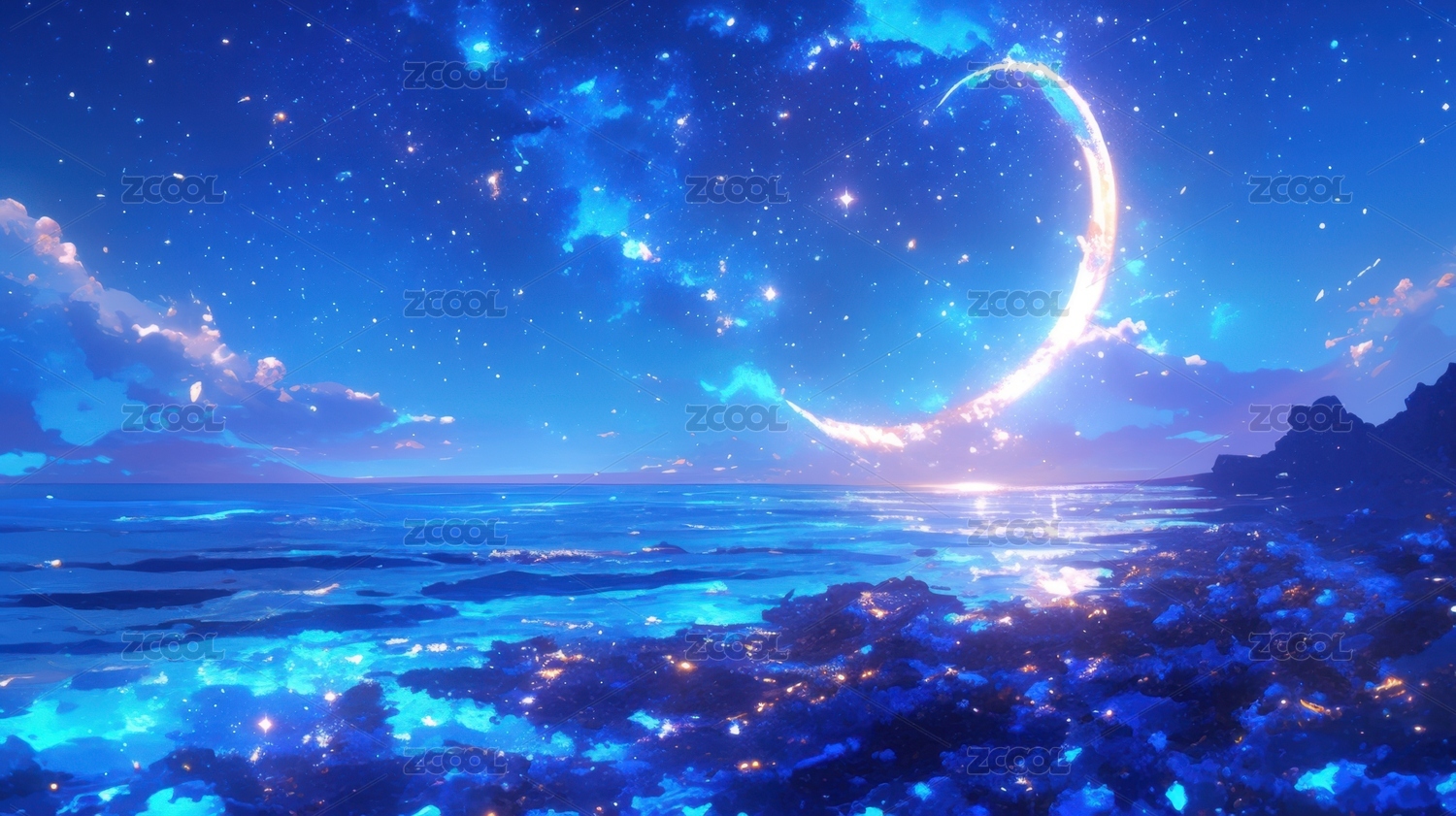 梦幻,自然,美丽,天空,宁静,云朵,夜空,流星,蓝色,夜晚