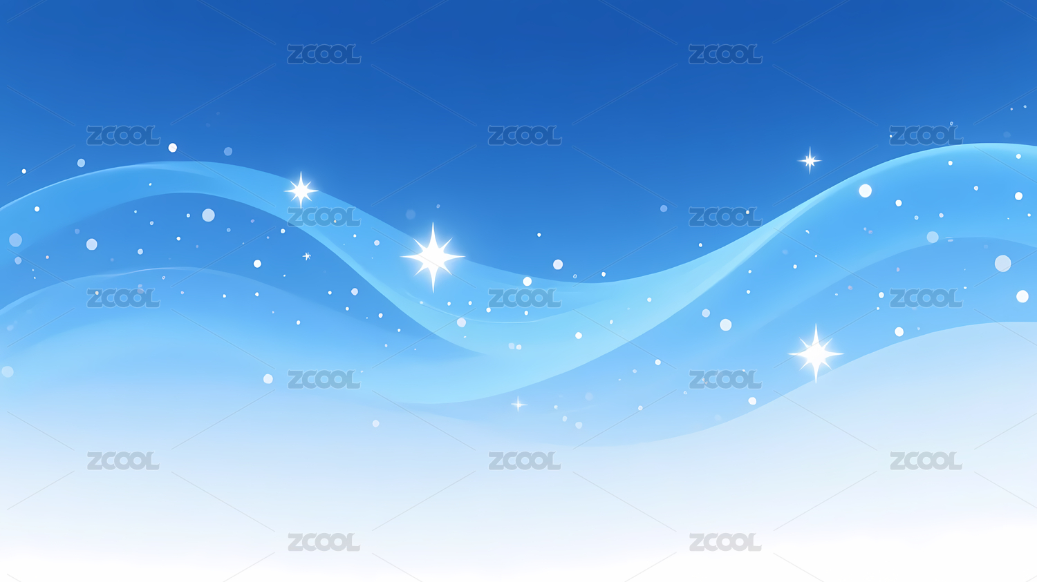 优雅浅蓝色抽象背景带流动波纹与闪烁星光