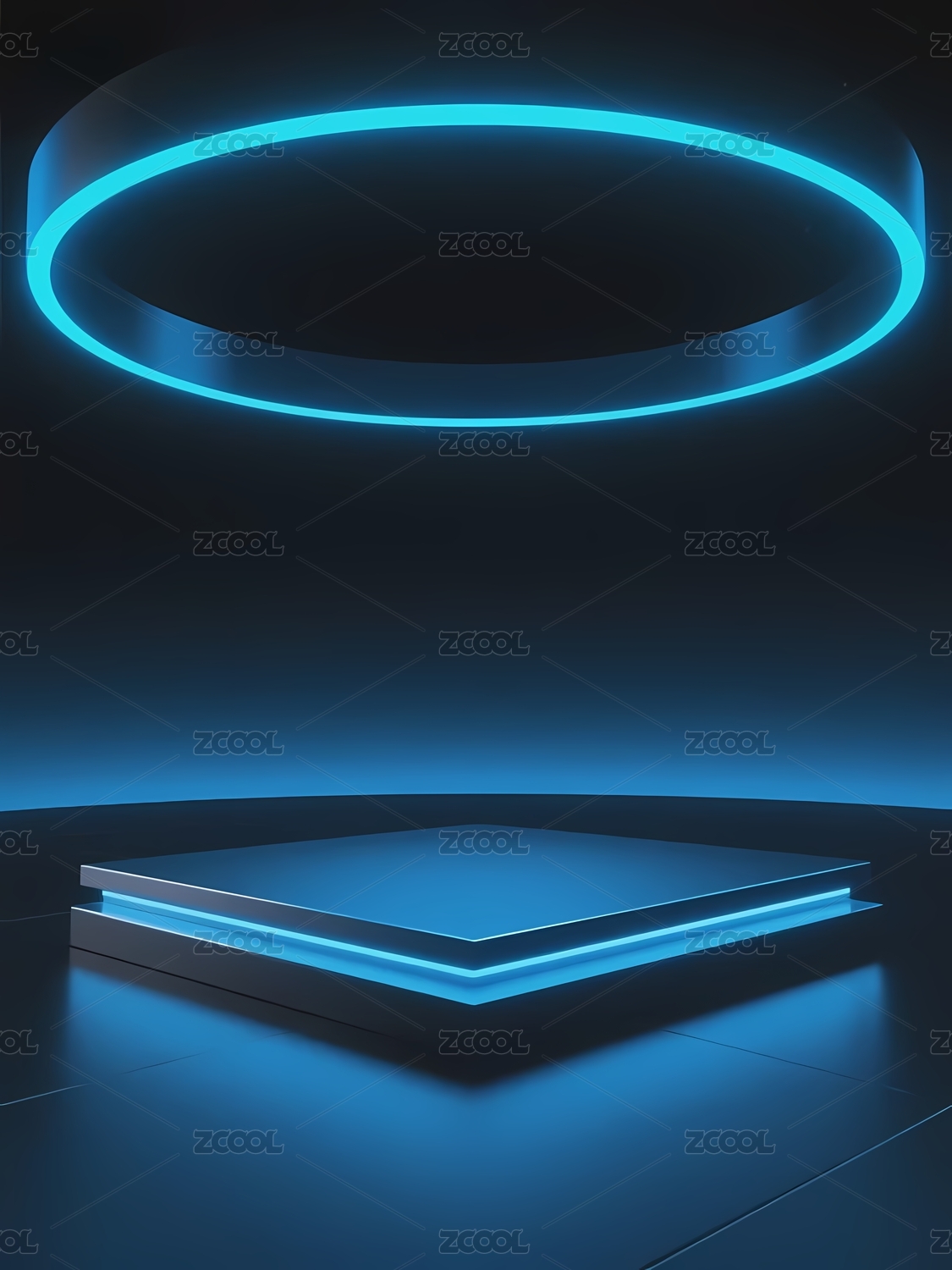 蓝色霓虹灯环绕的未来感平台