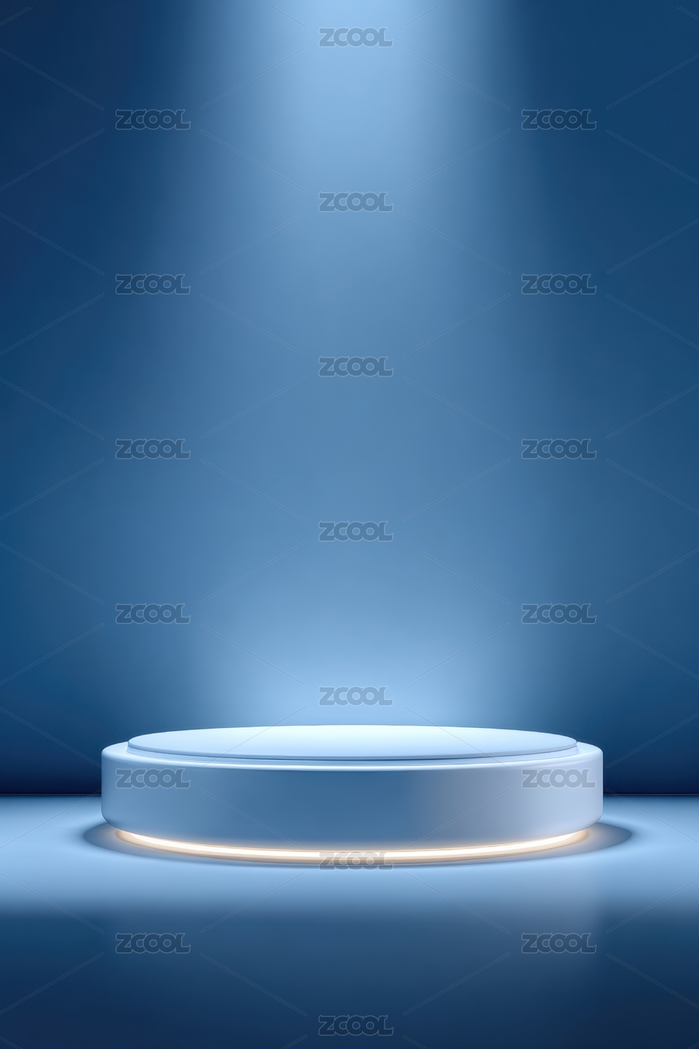 蓝色背景下的白色圆形展台
