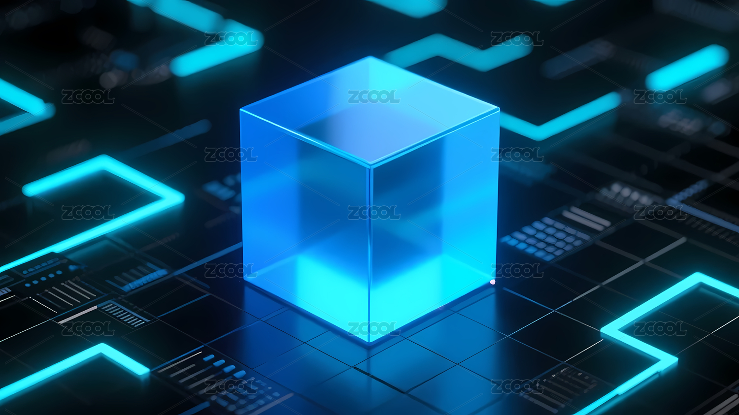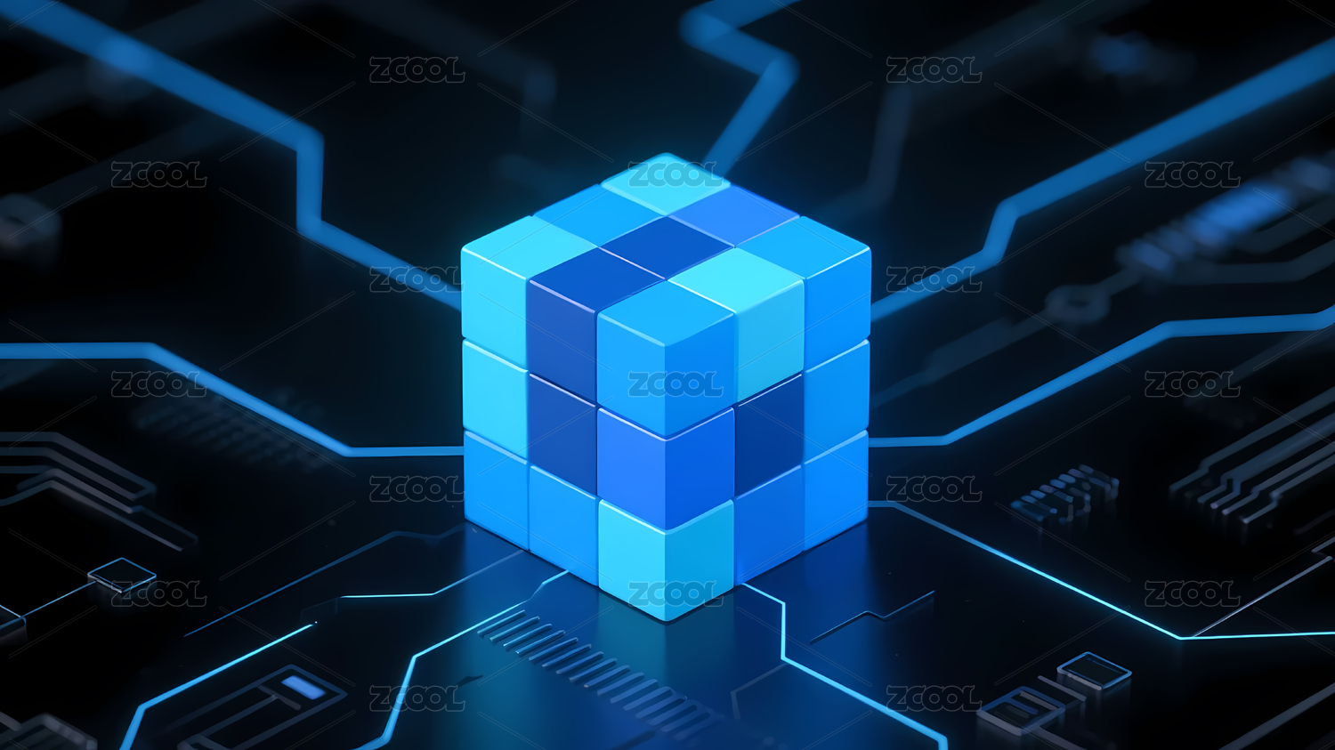 蓝色,未来,科技,深色,纹理,发光,立方体,立体,结构,电路