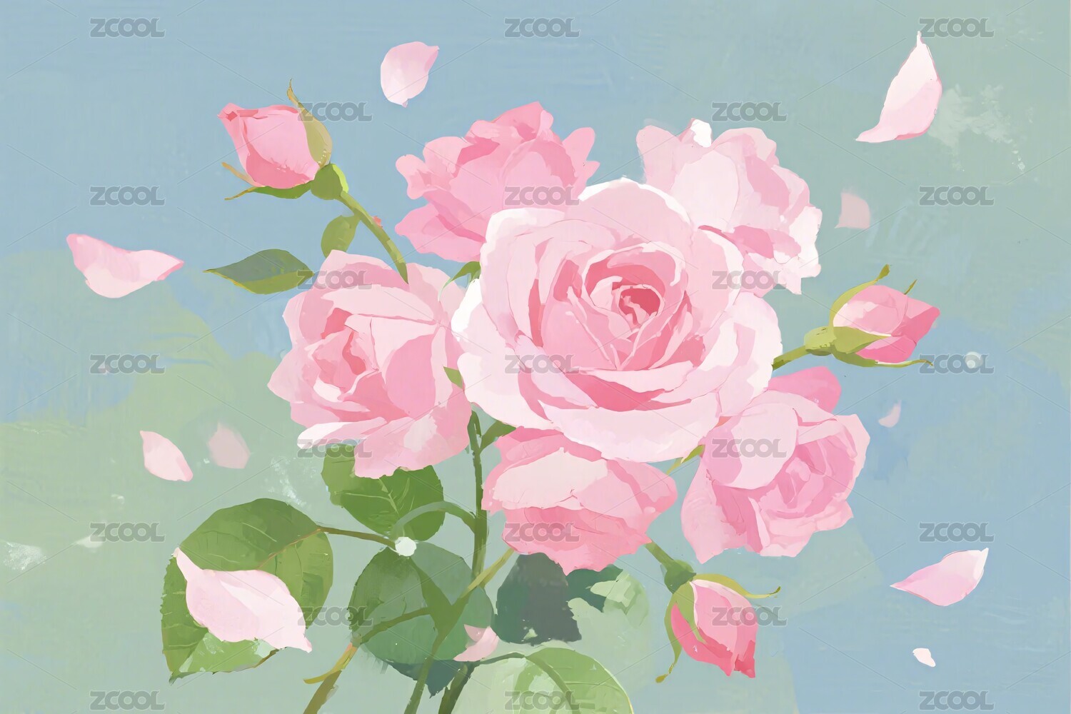 淡粉色玫瑰花插画