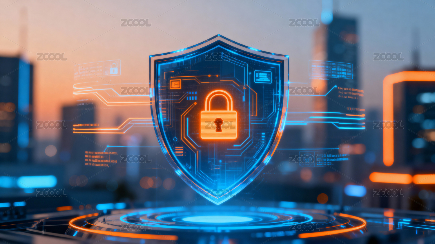 盾牌,数据,科技,安全,保护,蓝色,信息,数字,背景,橙色