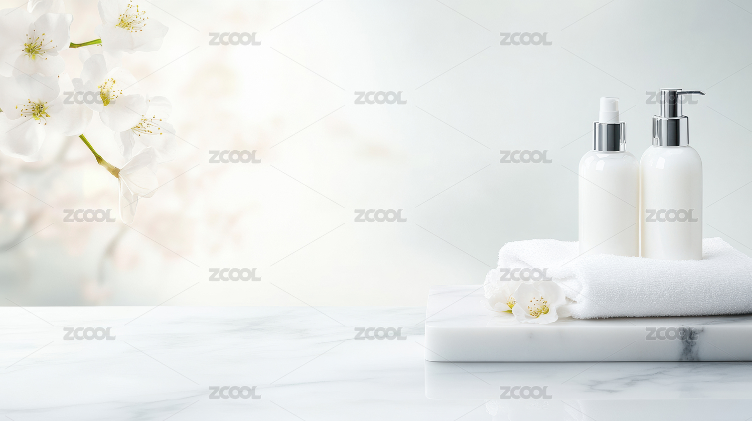 清新化妆品与花卉装饰