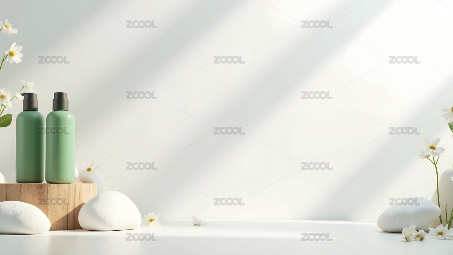 清新护肤品与雏菊装饰