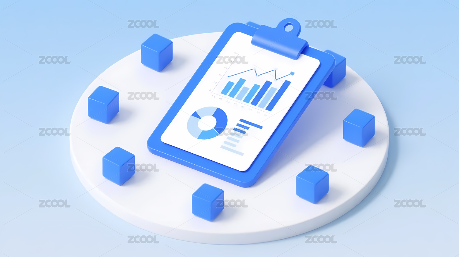 蓝色剪贴板与数据图表
