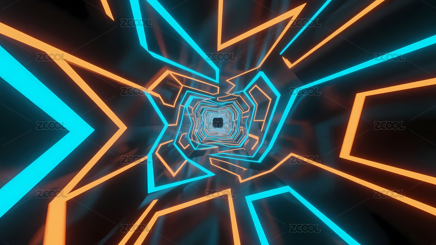 橙蓝线条几何隧道