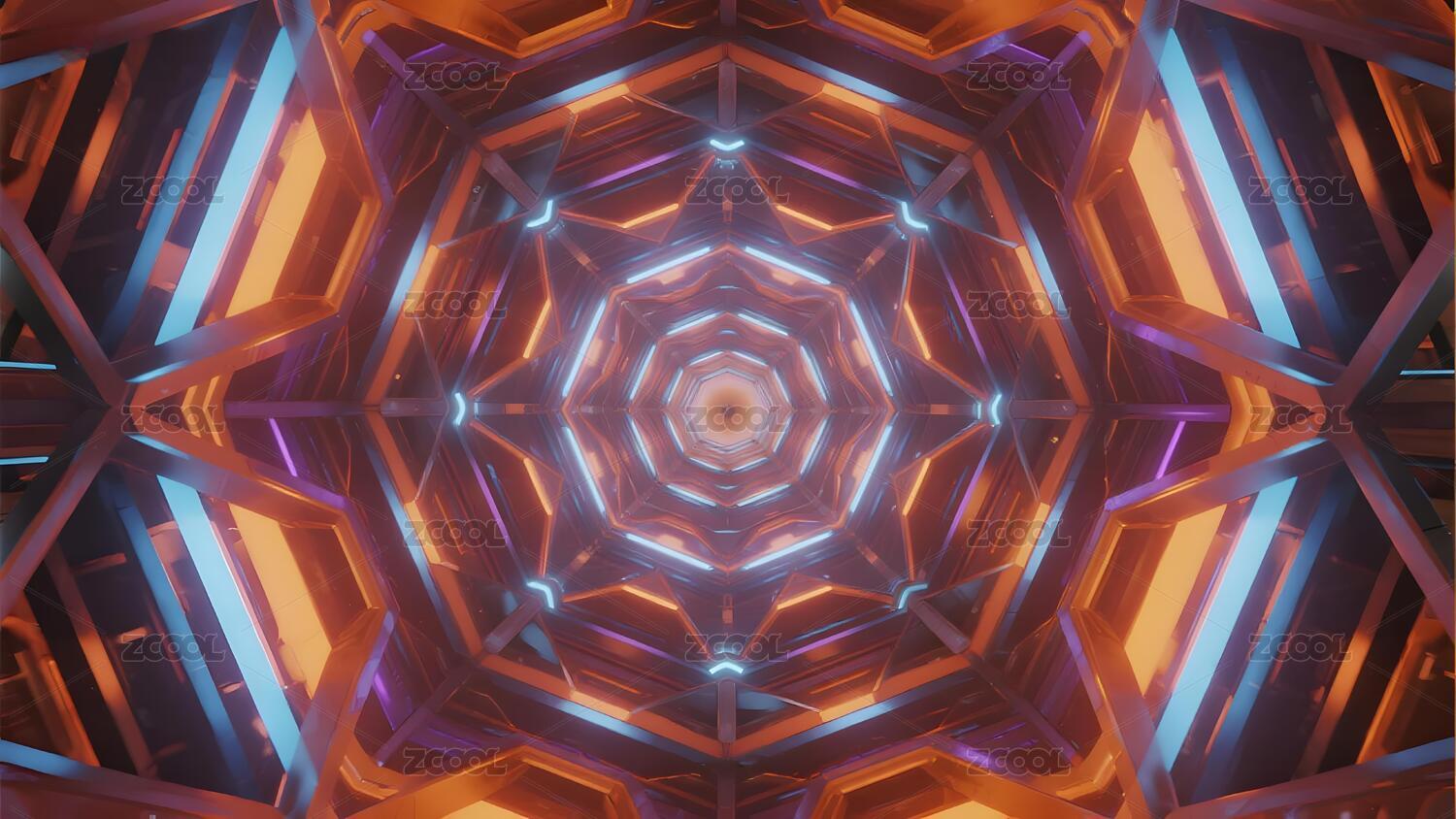 橙蓝线条六边形隧道