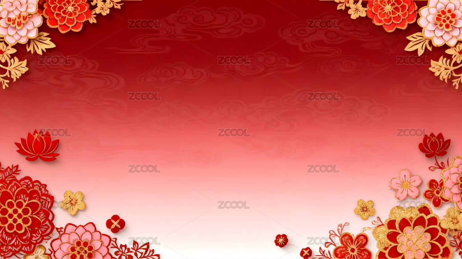 喜庆中国风金色花纹红色背景