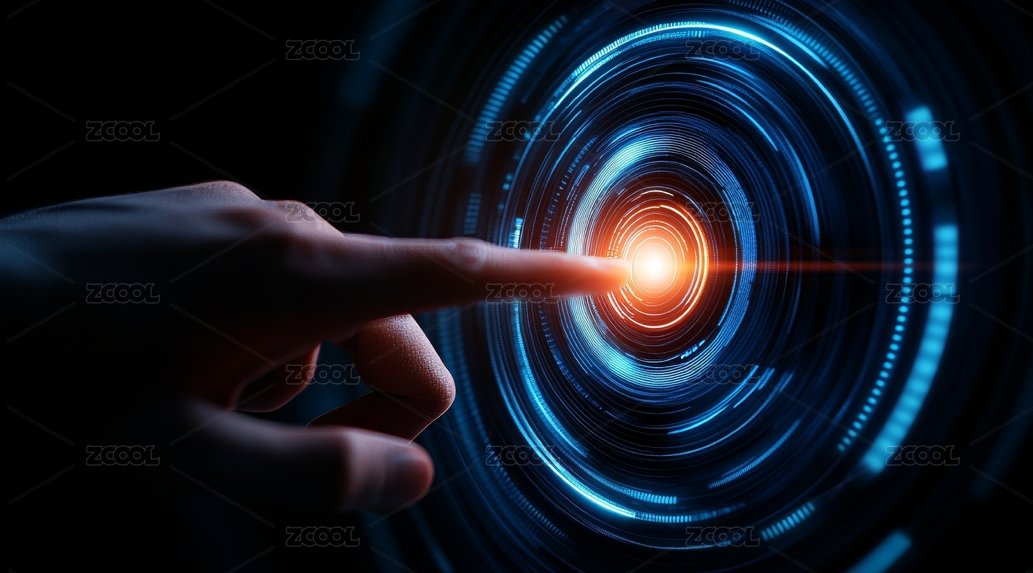 手指,按钮,发光,科技,蓝色,白色,未来,触碰,圆形,冷色