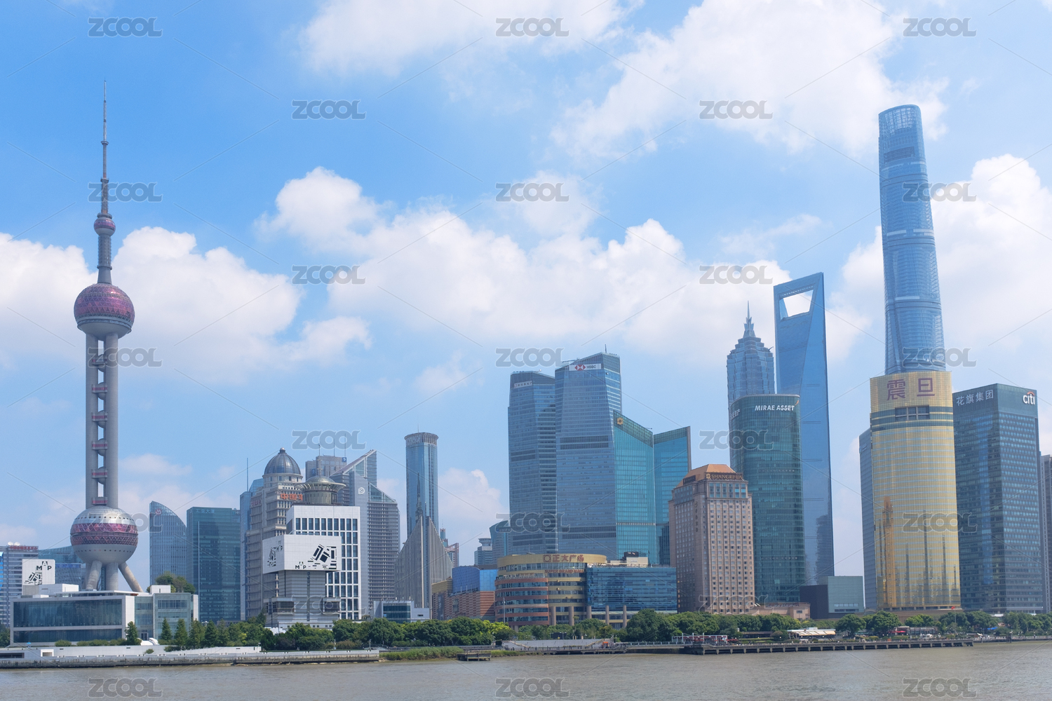 上海黄浦江畔浦东陆家嘴金融城地标建筑群