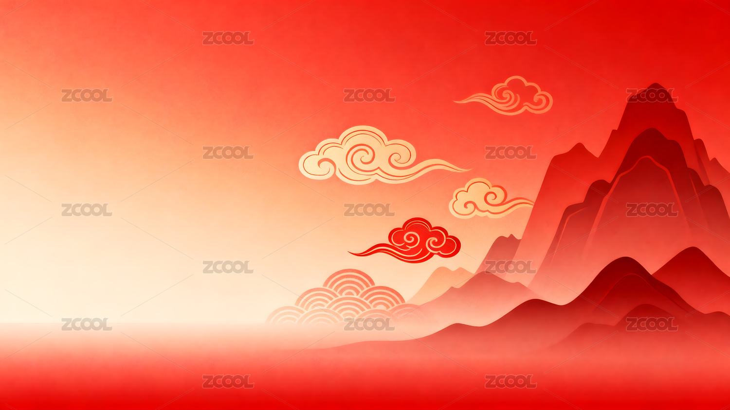 红色,背景,祥云,山水,纹样,波浪纹,中国风,传统,喜庆,节日