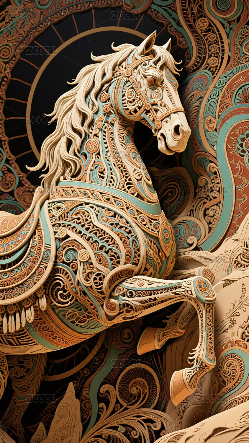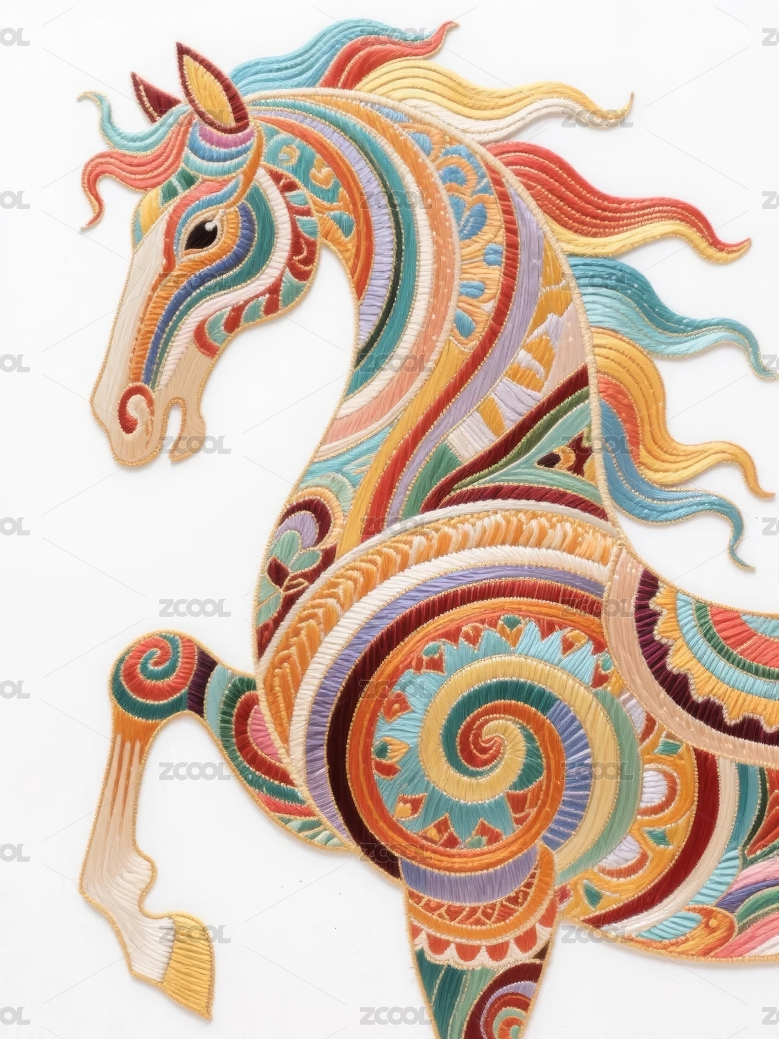 华丽彩绘奔马艺术图案