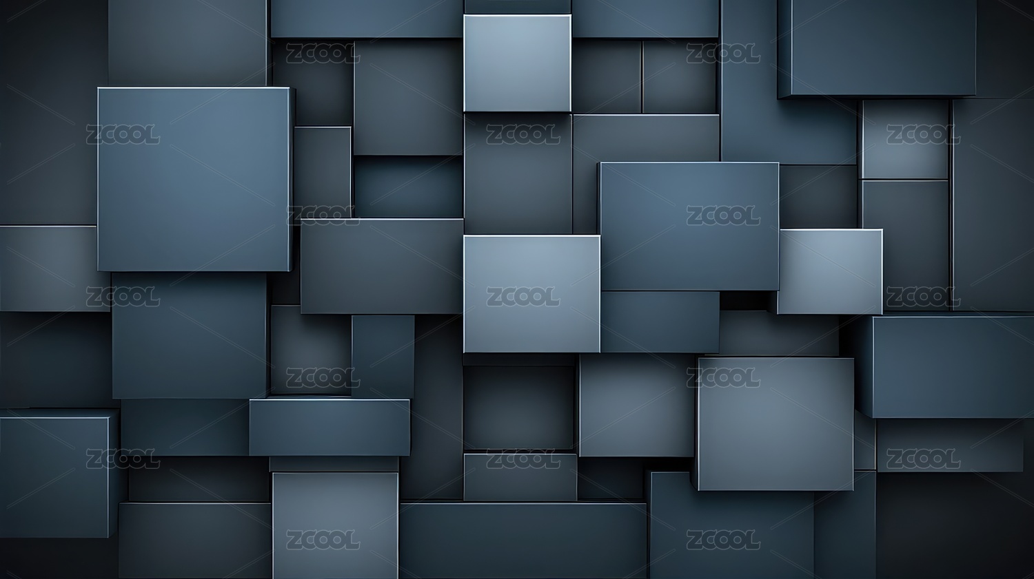 蓝灰色几何方块堆叠立体背景