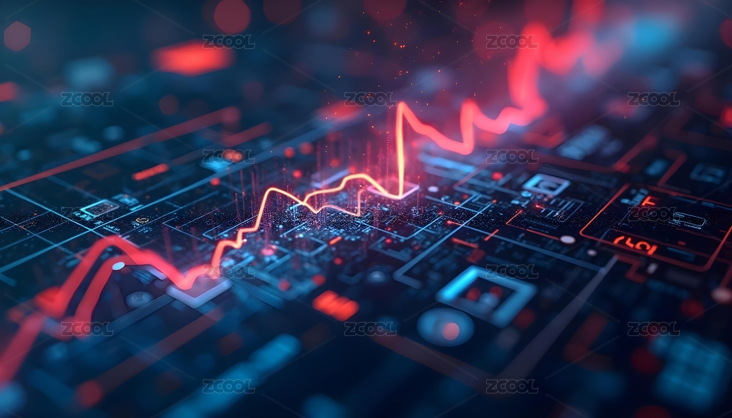 蓝色,科技,灯光,红色,折线图,城市,夜景,数据,增长,冷色调