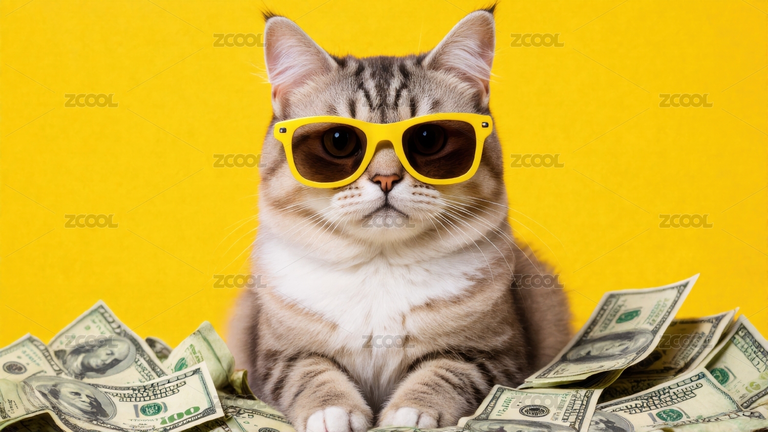 猫咪,眼镜,钱币,时尚,黄色,西装,可爱,动物,富裕,表情