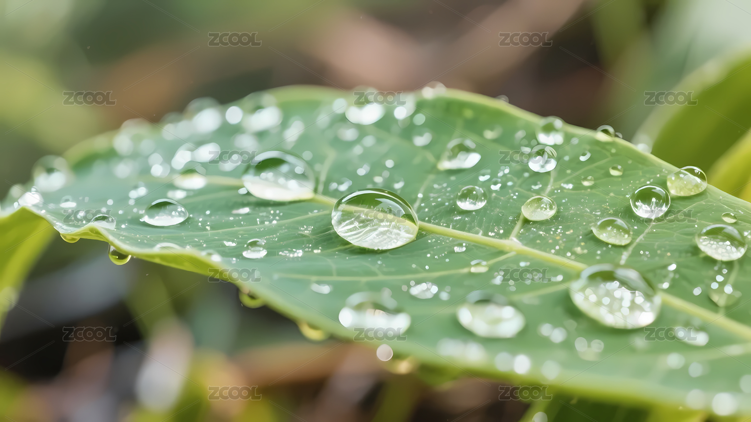 下雨天雨滴在叶子上特写雨水节气场景插图