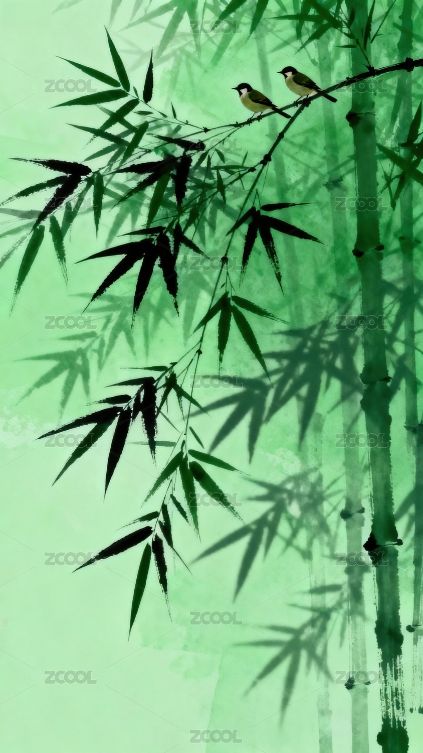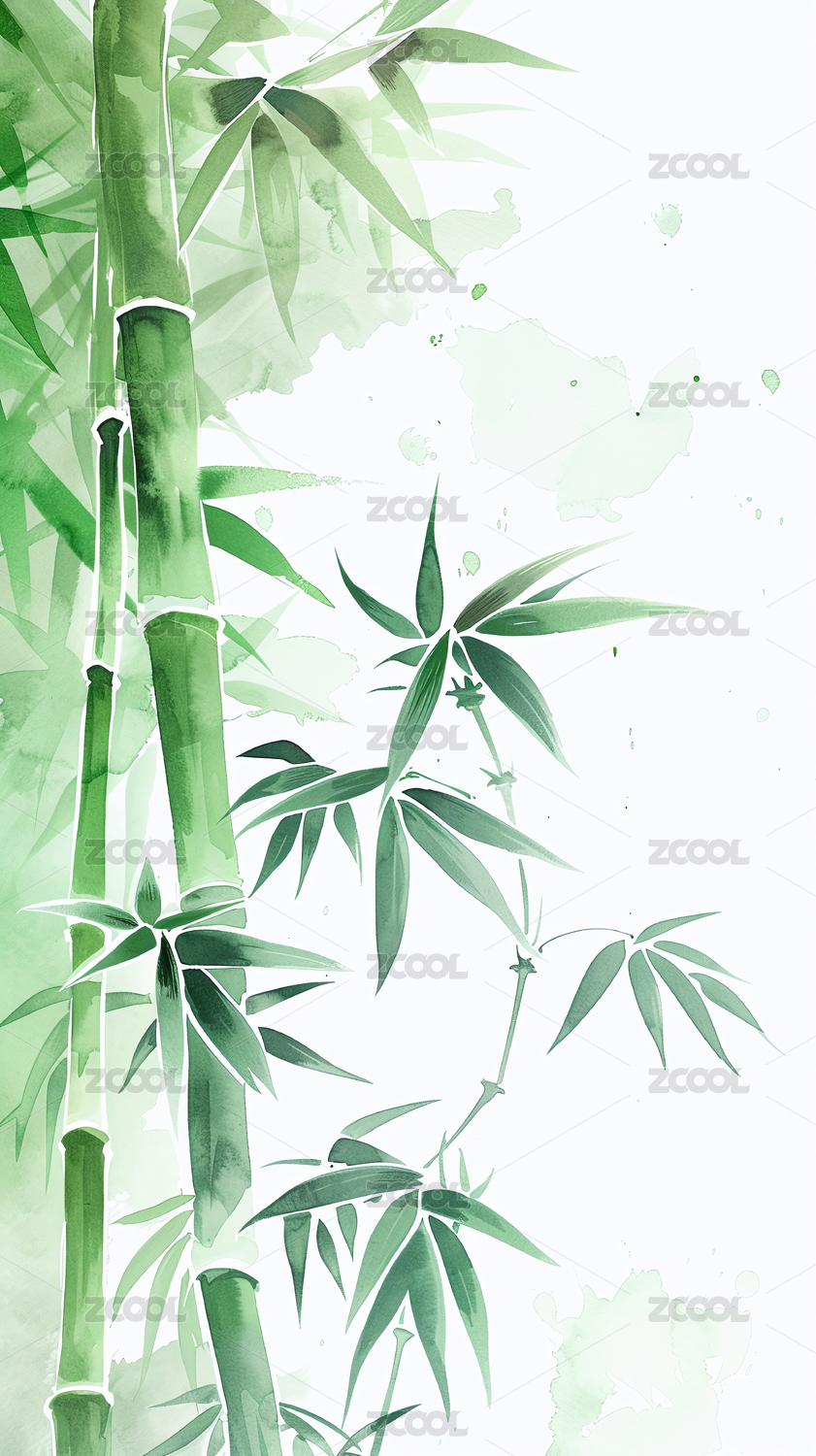 风中摇曳的竹子 手绘 插画 高清 壁纸
