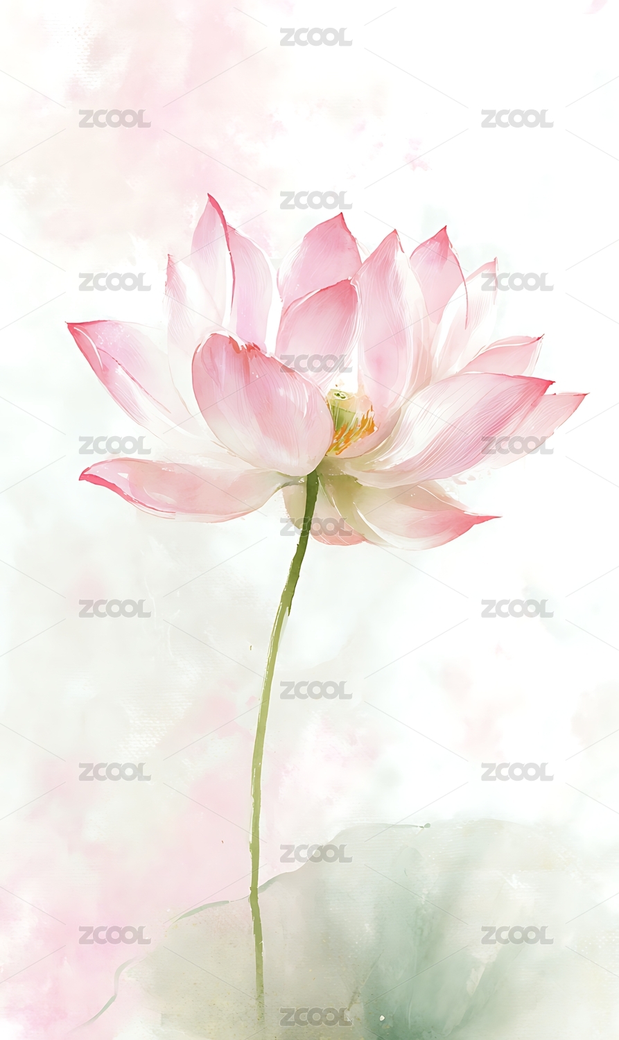 圣洁莲花绽放水光莲影禅意青色莲花插画