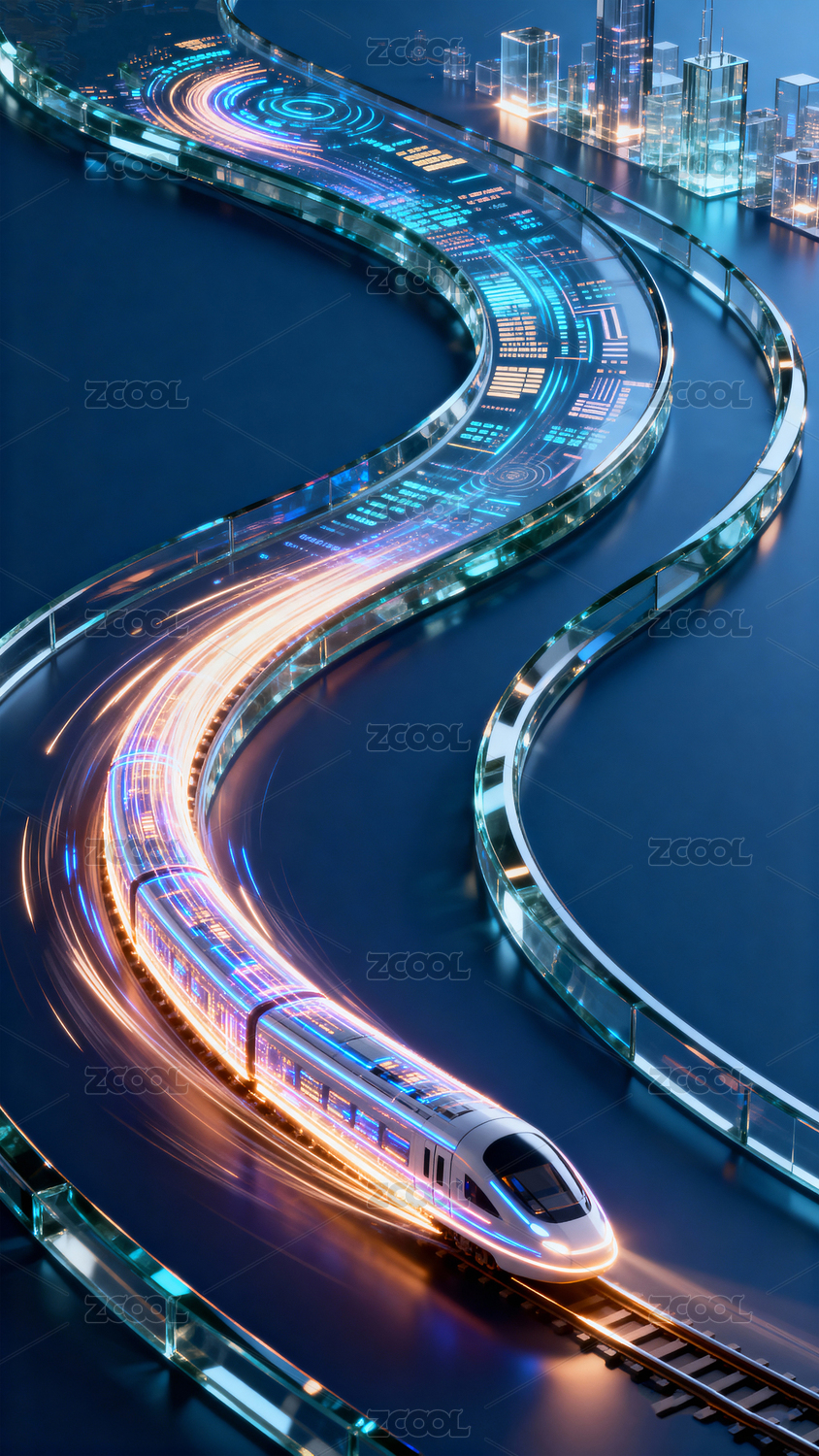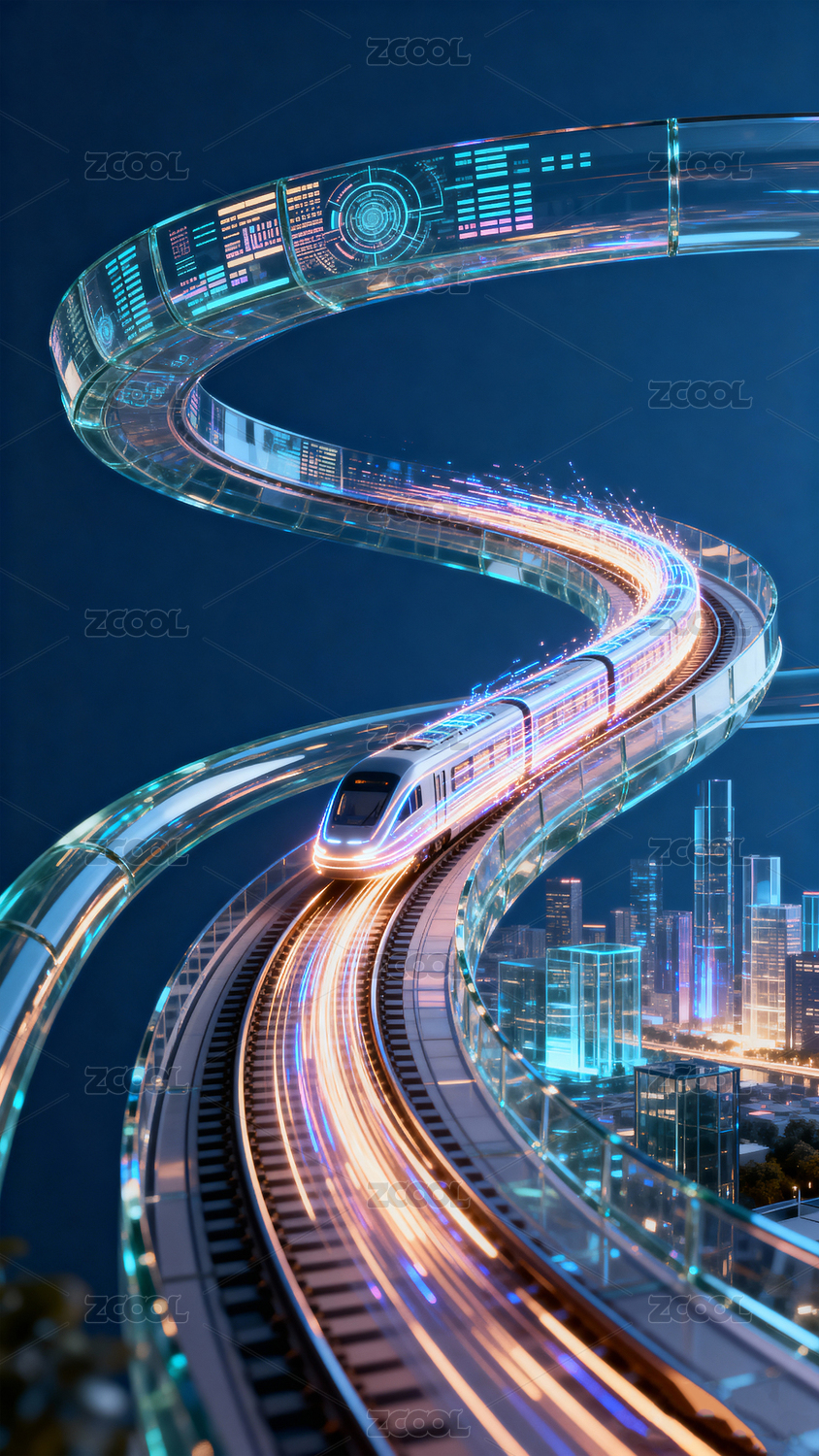 未来城市高速列车夜景