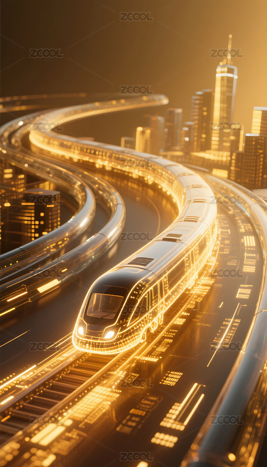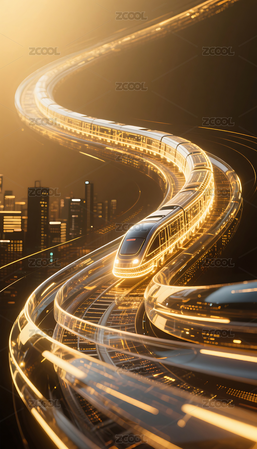 未来城市中的高速磁悬浮列车