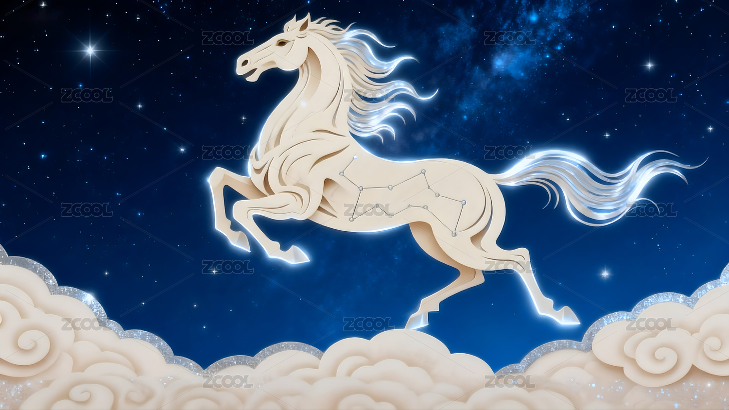 马,剪纸,星空,月亮,云朵,夜晚,梦幻,纸艺,奔马,夜空