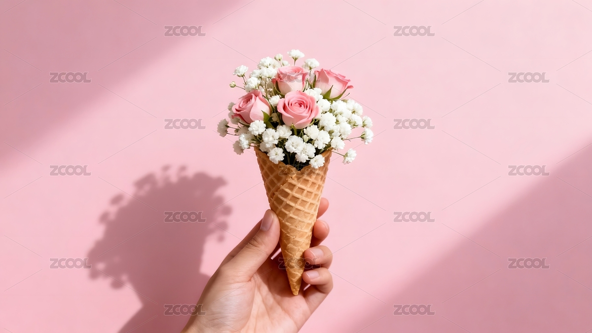 背景,简约,装饰,创意,花朵,花卉,花束,冰淇淋,甜筒,设计