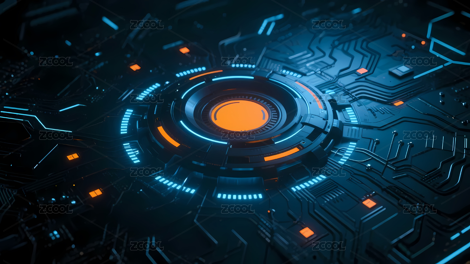 橙色,科技,未来,蓝色,发光,电路,深蓝,圆形,核心,节点