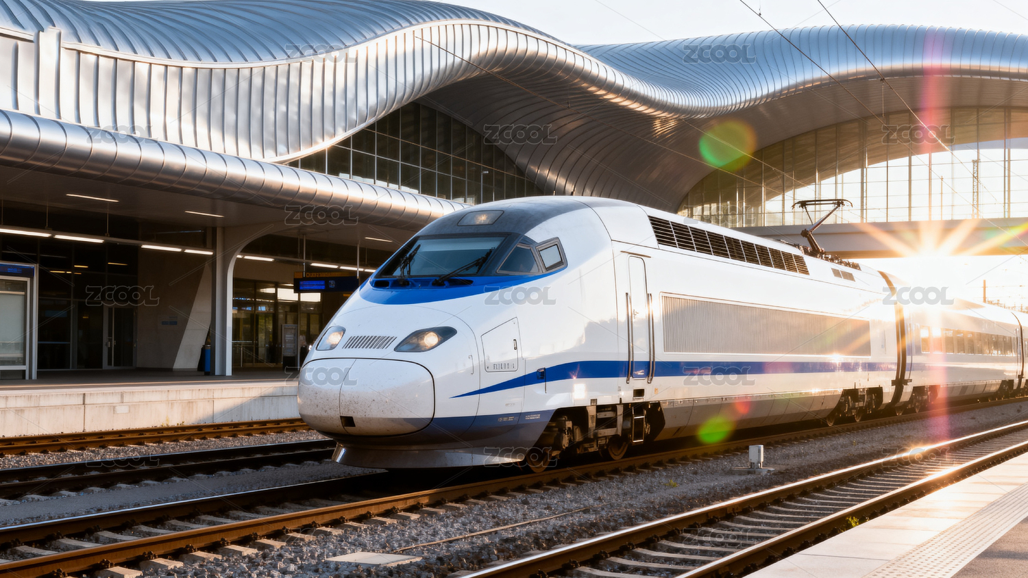 现代高铁站台与高速列车
