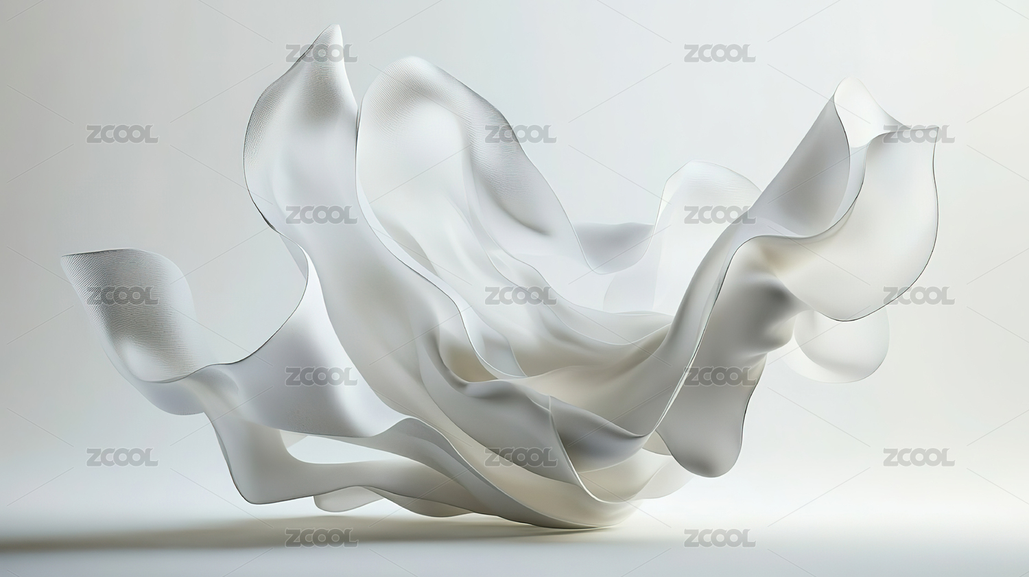 牛奶般的丝绸流动在白色背景上3D渲染
