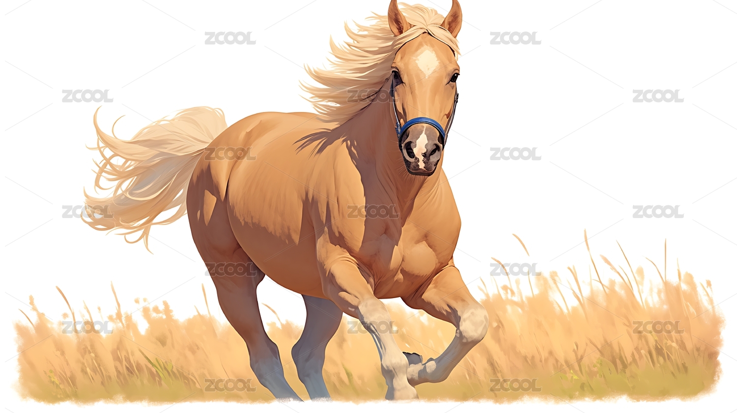 奔腾的马写实手绘插画场景
