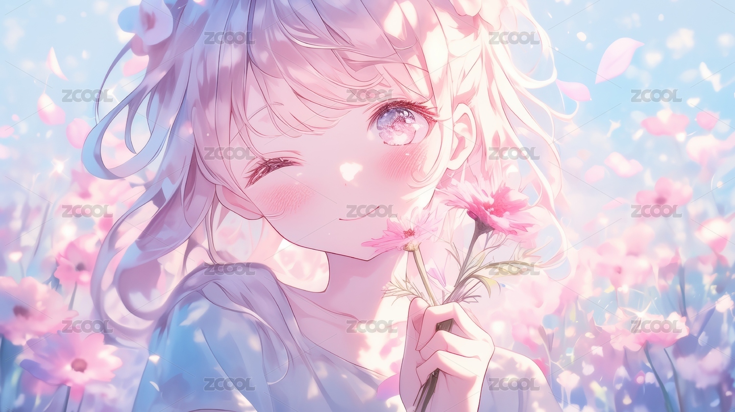 卡通,动漫,女孩,粉色,冰淇淋,壁纸,二次元,背景,彩色