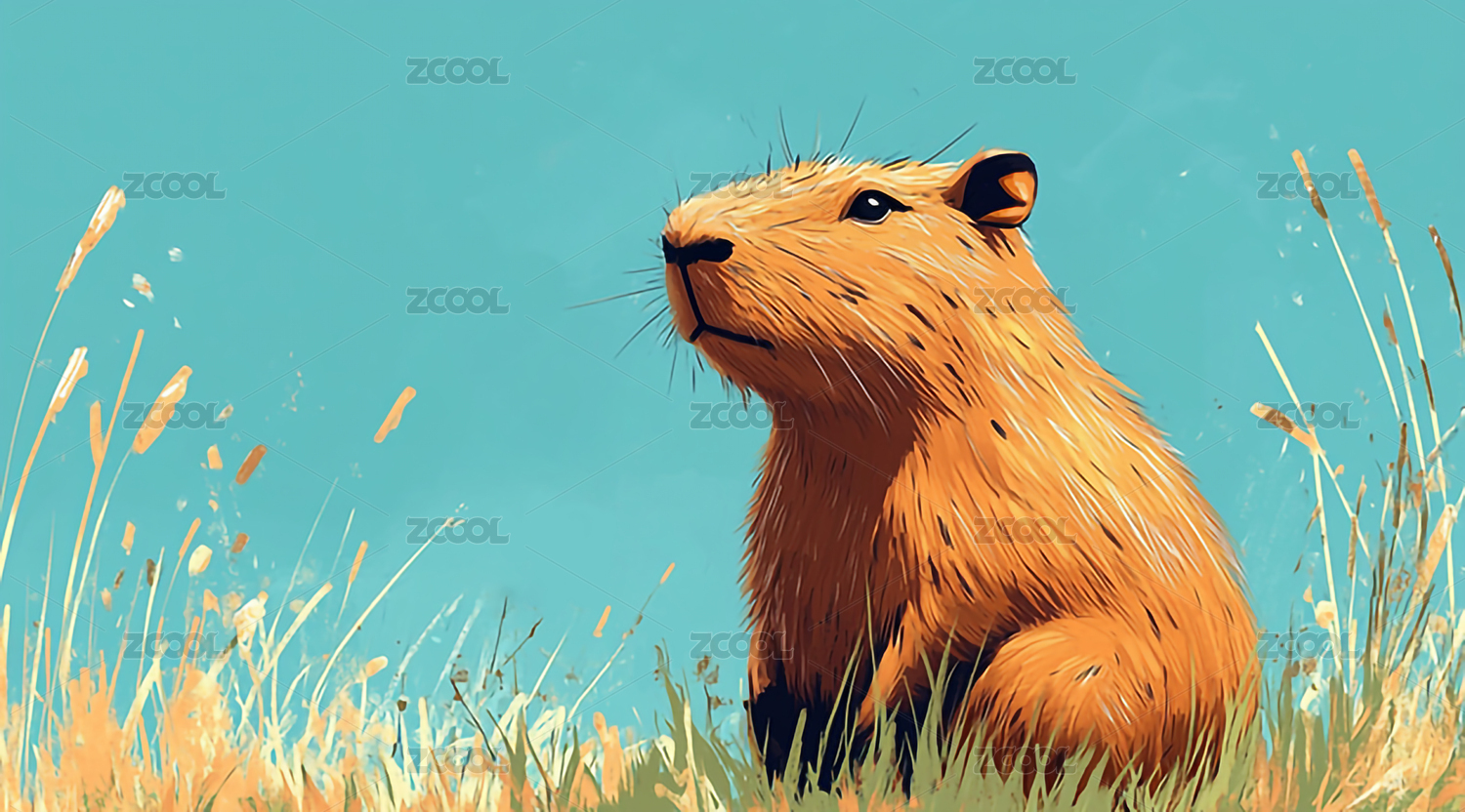 水豚可爱唯美野生动物3D卡通插画壁纸