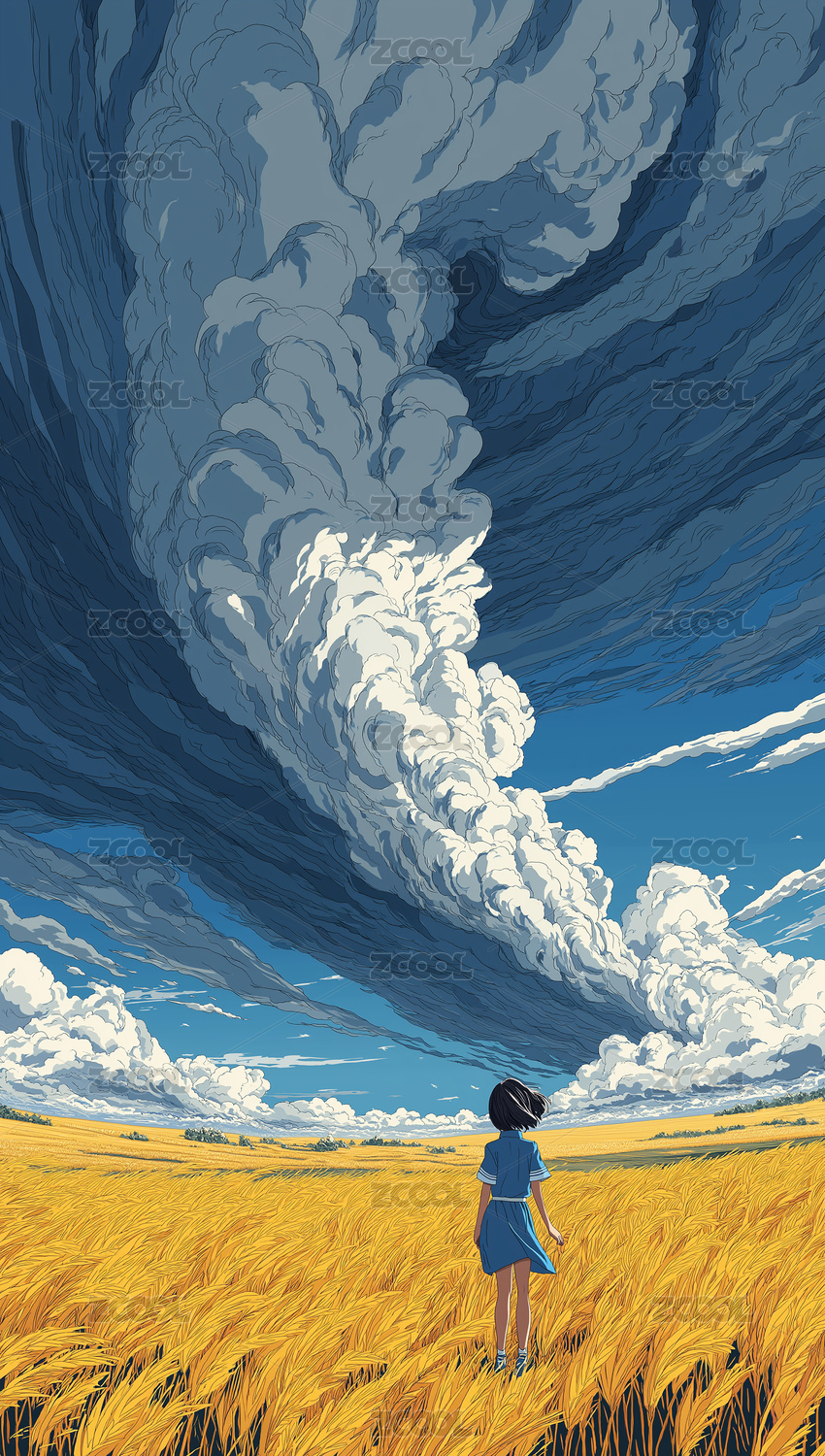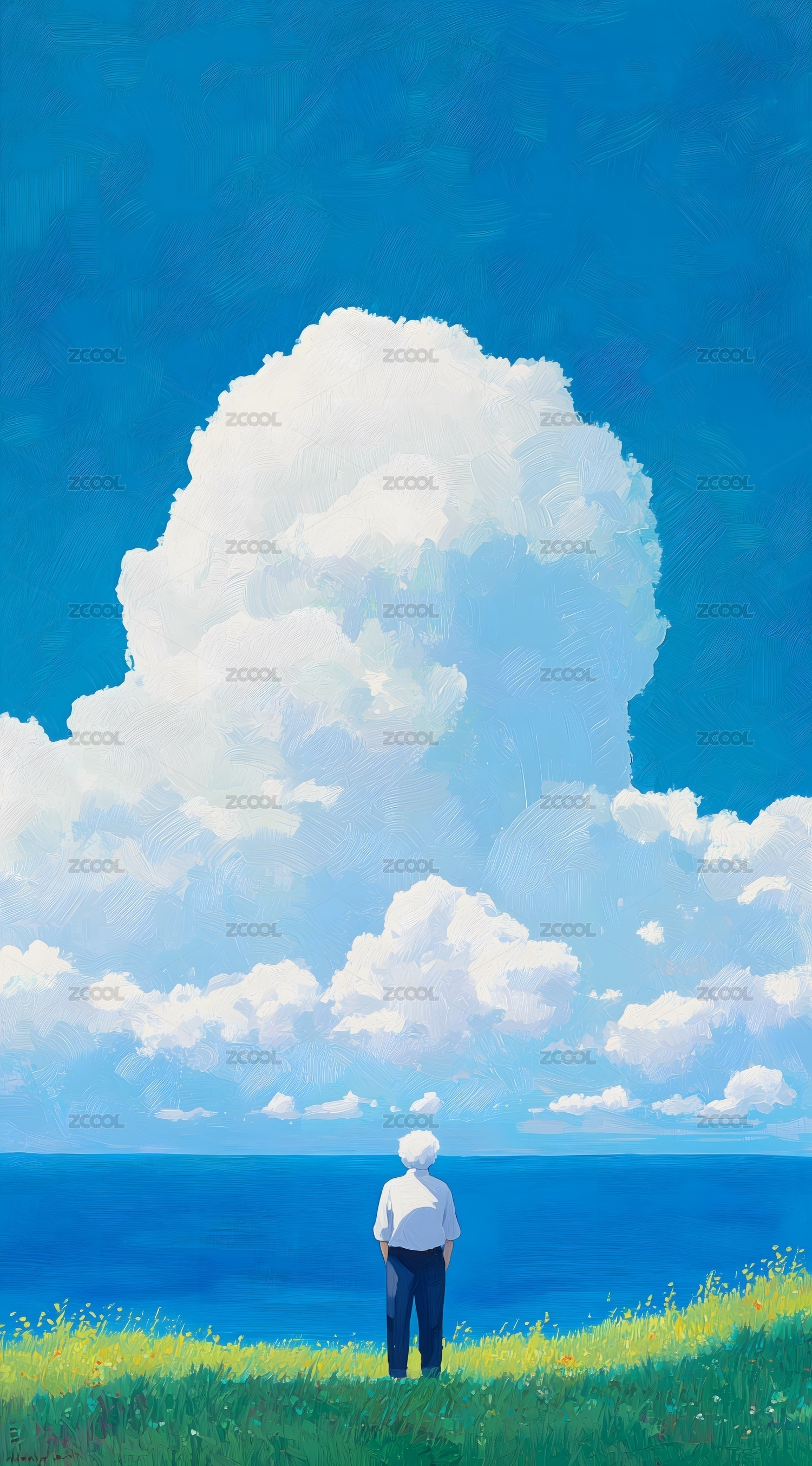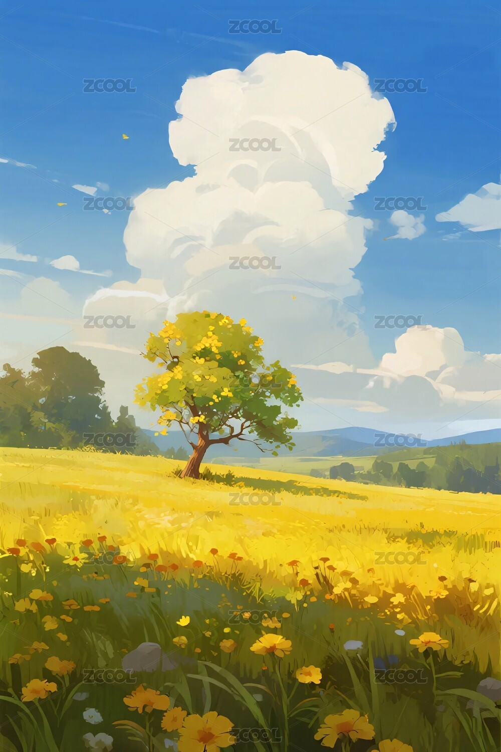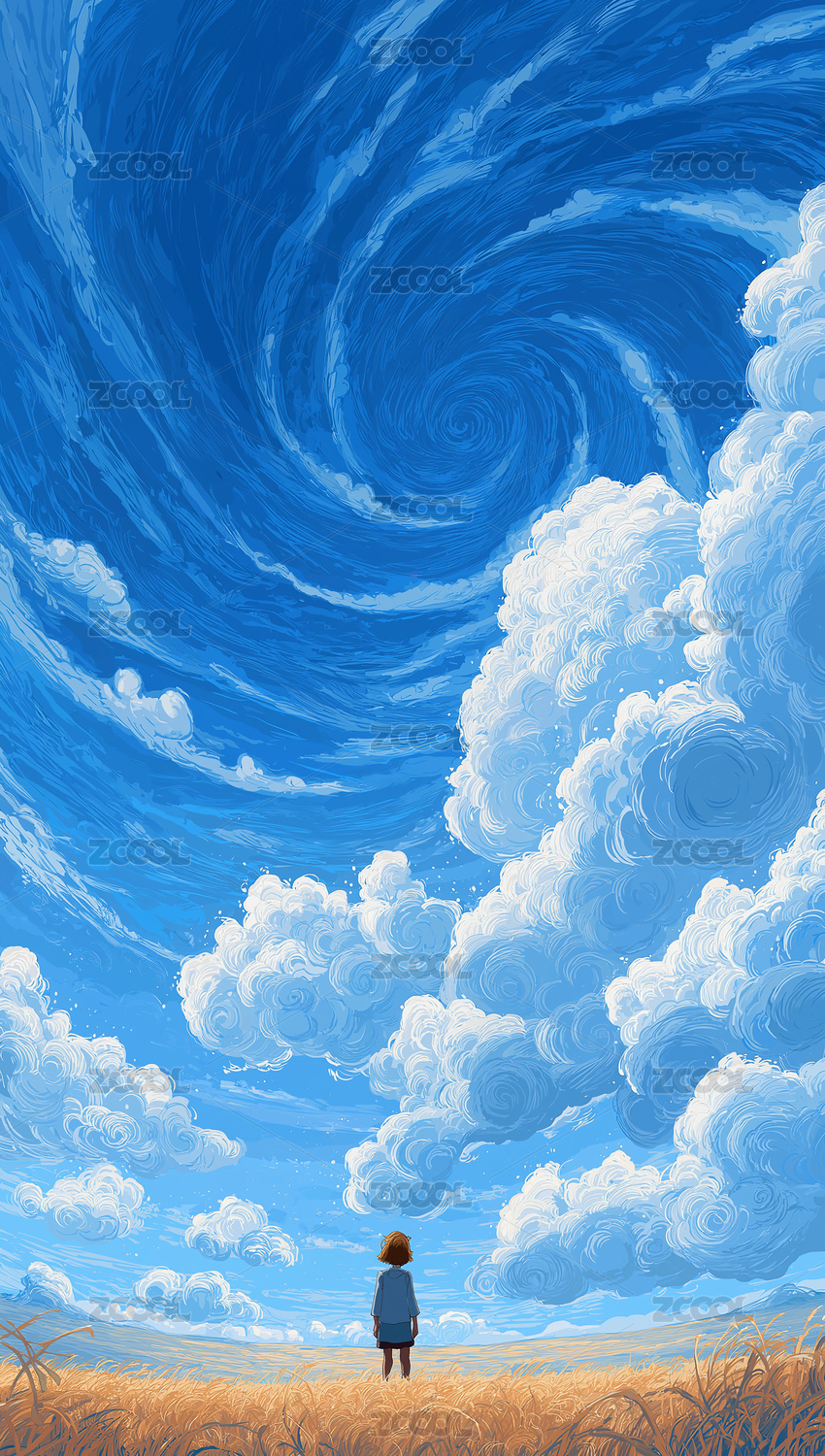 蓝色,黄色,天空,夏日,树木,户外,云,自然,风景,男孩