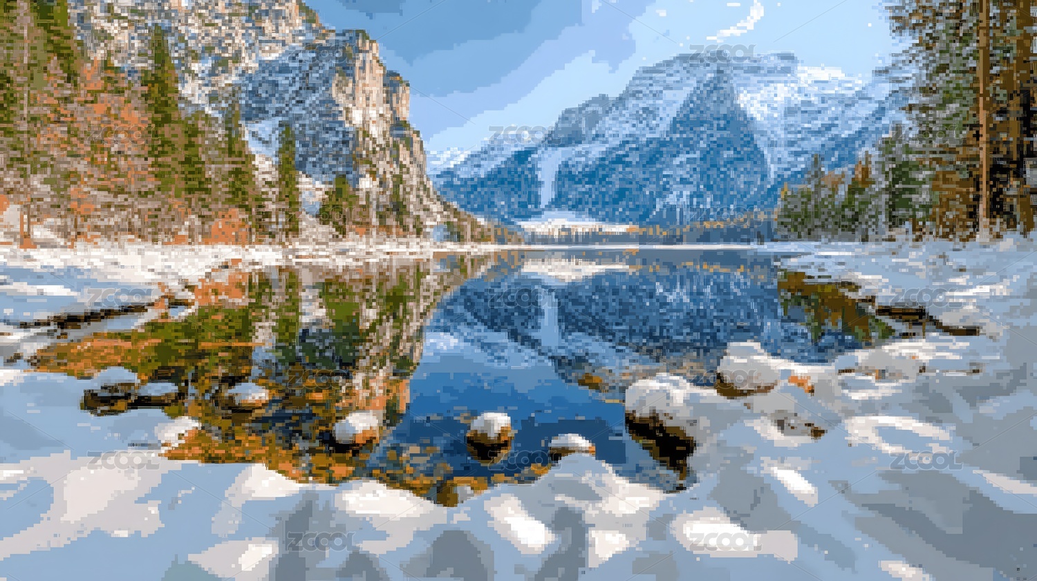阳光,树木,自然,风景,石头,山脉,山峰,雪山,河流,蓝天