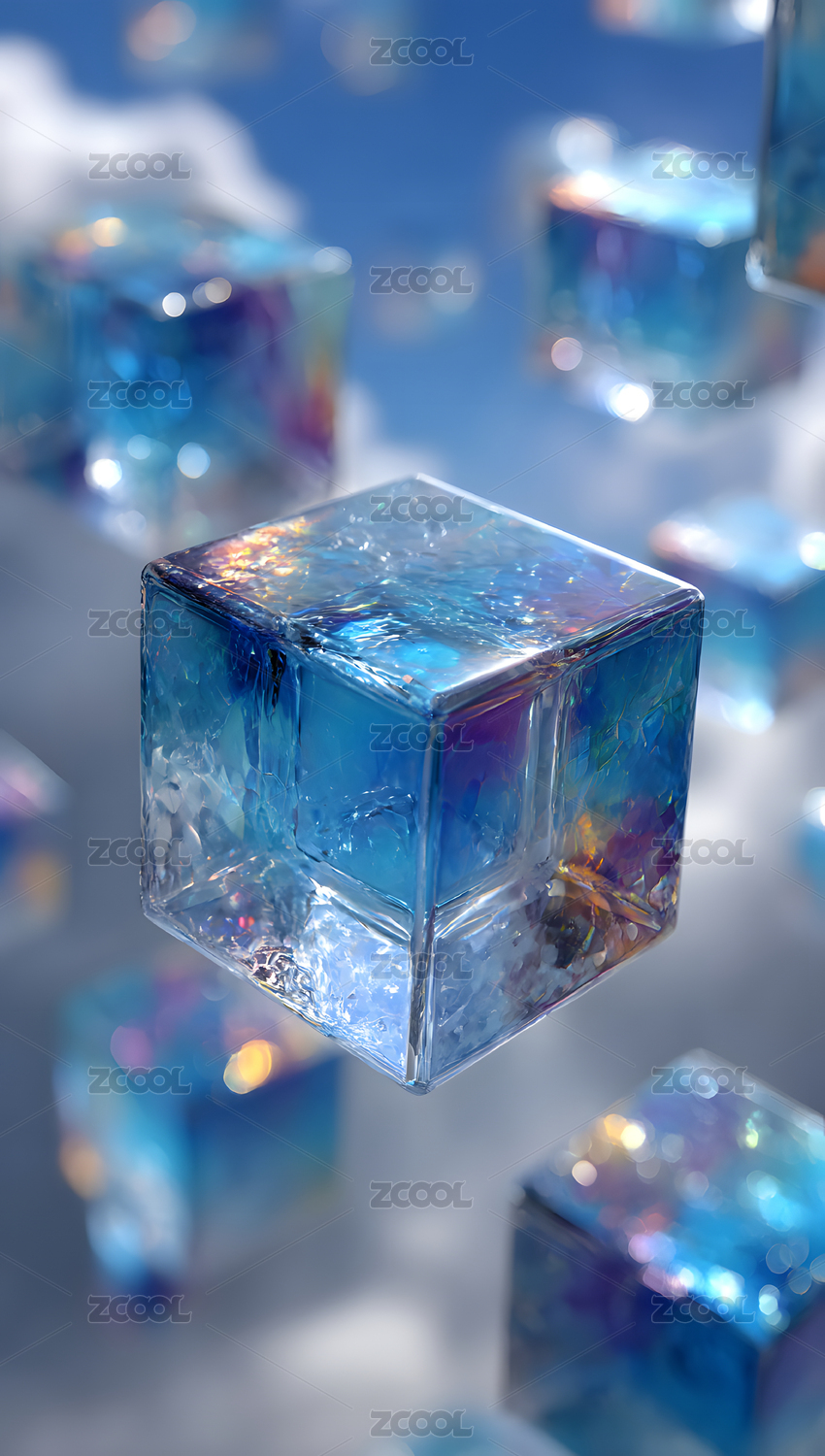 蓝色晶莹立体冰块阵列