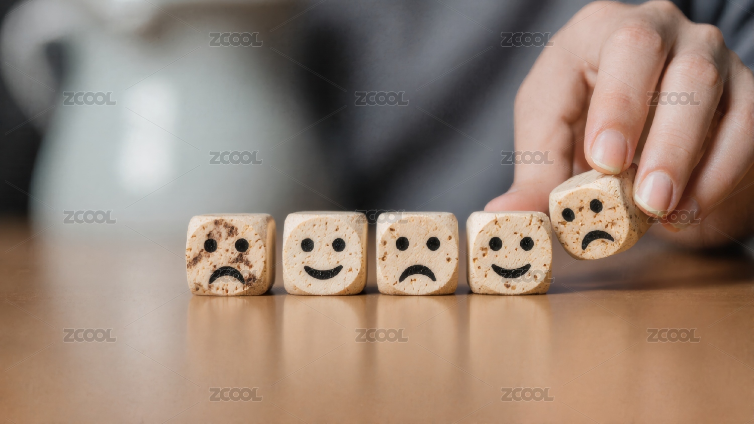 方块,笑脸,哭脸,木桌,背景,人物,情绪,快乐,悲伤,选择