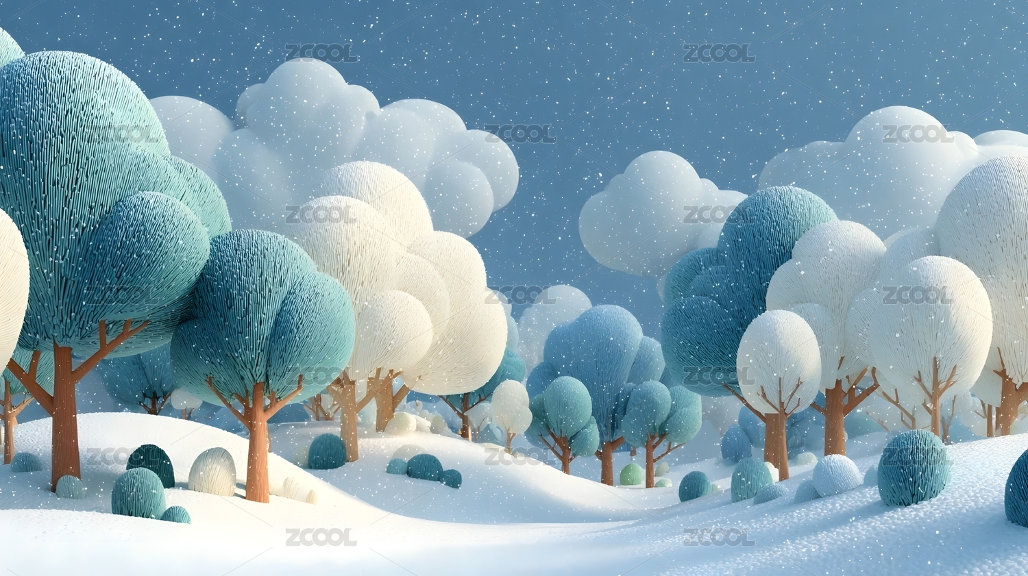 3D可爱卡通风格绿色草原场景