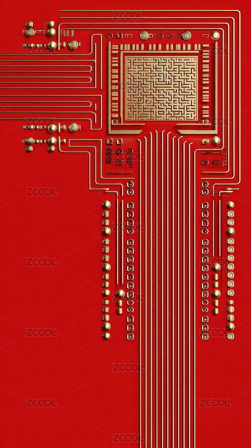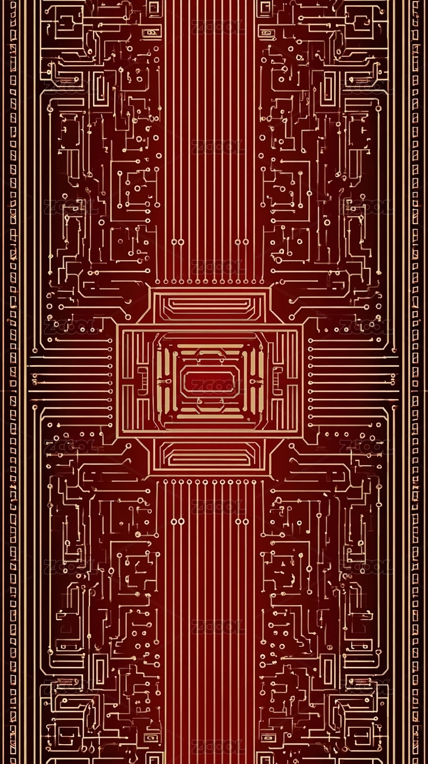 红色,抽象,纹理,科技,图案,设计,金色,电路板,芯片,复杂